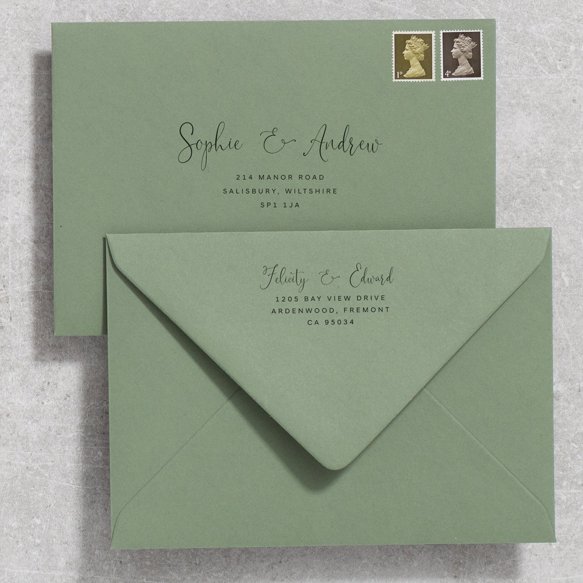 ENVELOPE ADDRESSING: Print your guest addresses on each envelope or include your return address on the reverse.