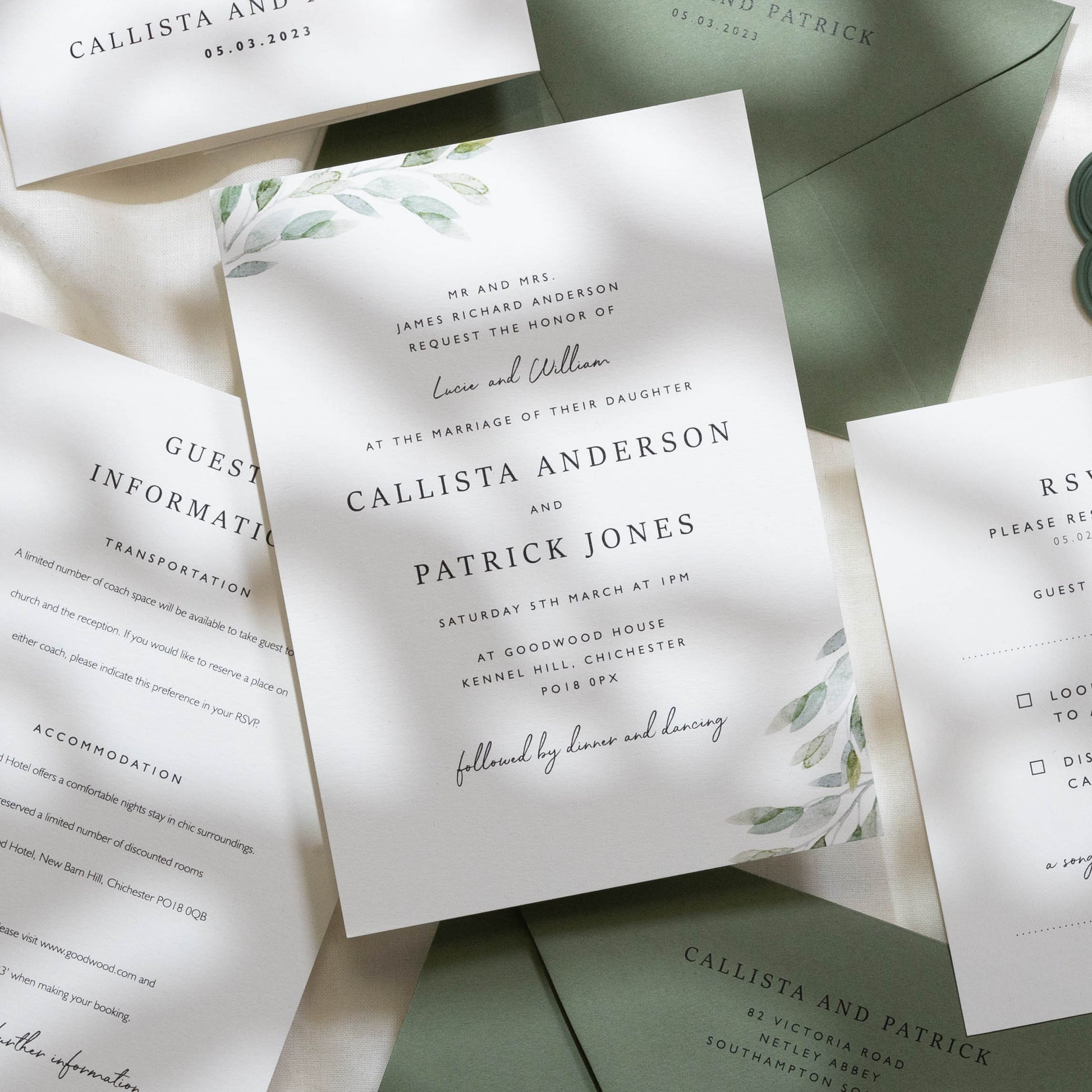 Greenery Wedding Invitation Set with Bellyband and RSVP 'Callista'