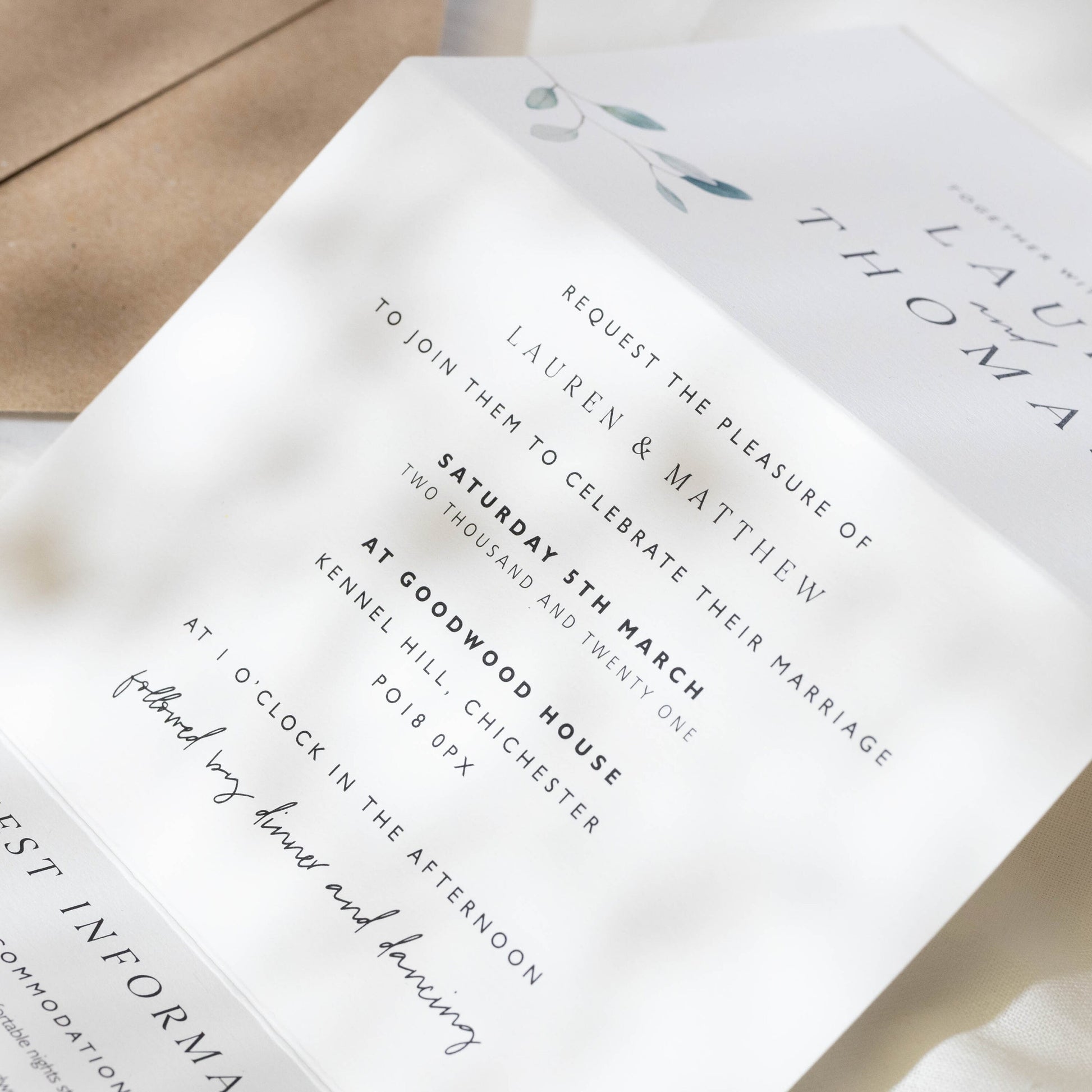 VELLUM JACKETS: Our translucent vellum jackets wrap around your invitations to add interest, texture and intrigue.