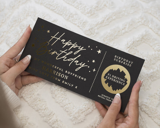 All cards are accompanied by a scratch off panel ready to you to peal and stick to conceal the surprise. Accompanied by a scratch off panel ready to you to peal and stick to conceal the surprise.