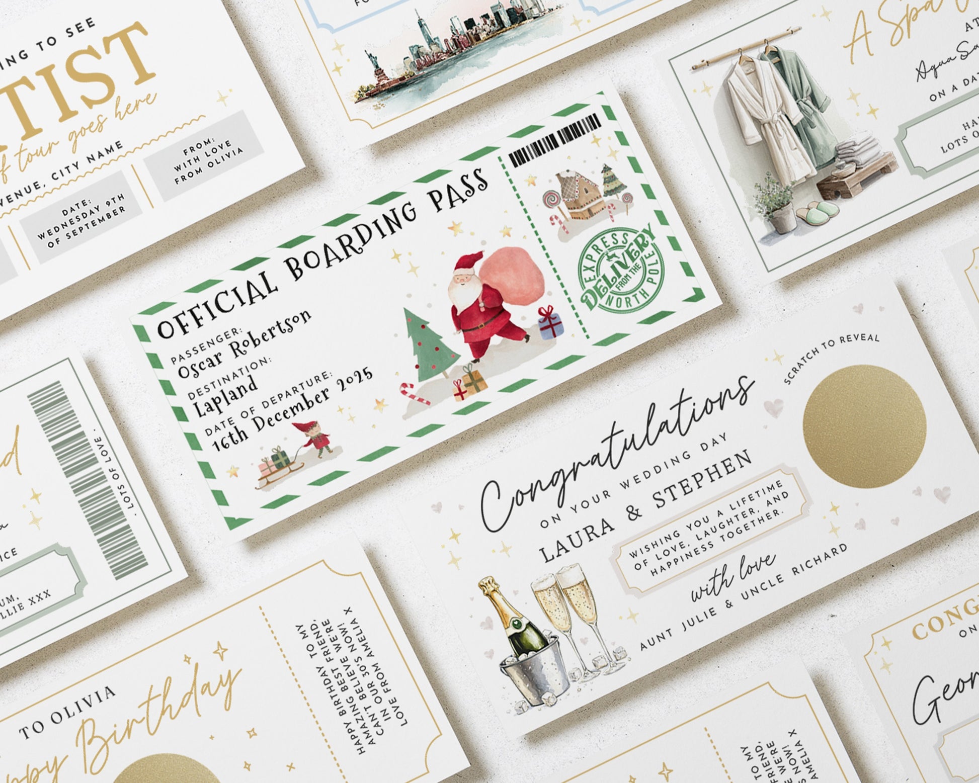 • Each voucher card measures 210x99mm, and is printed on heavyweight premium cardstock.