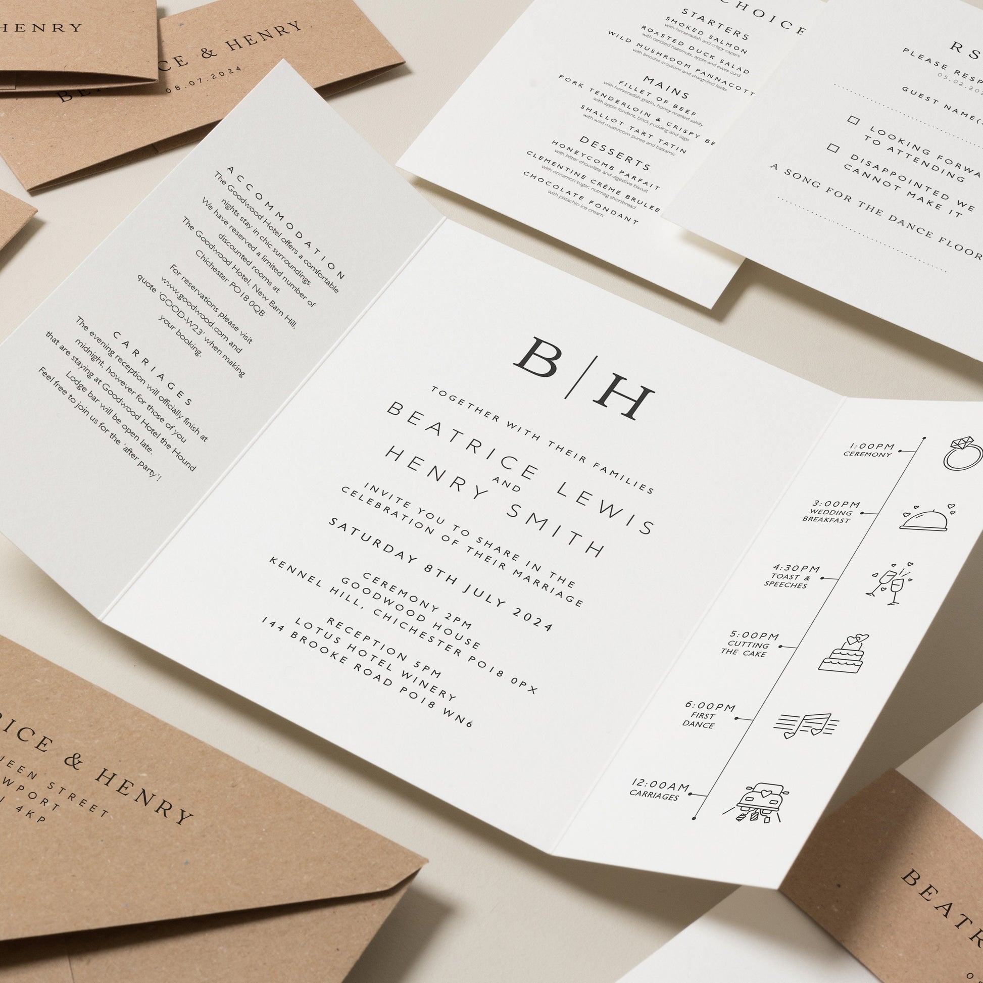 Minimal Gatefold Wedding Invitations 'Beatrice'