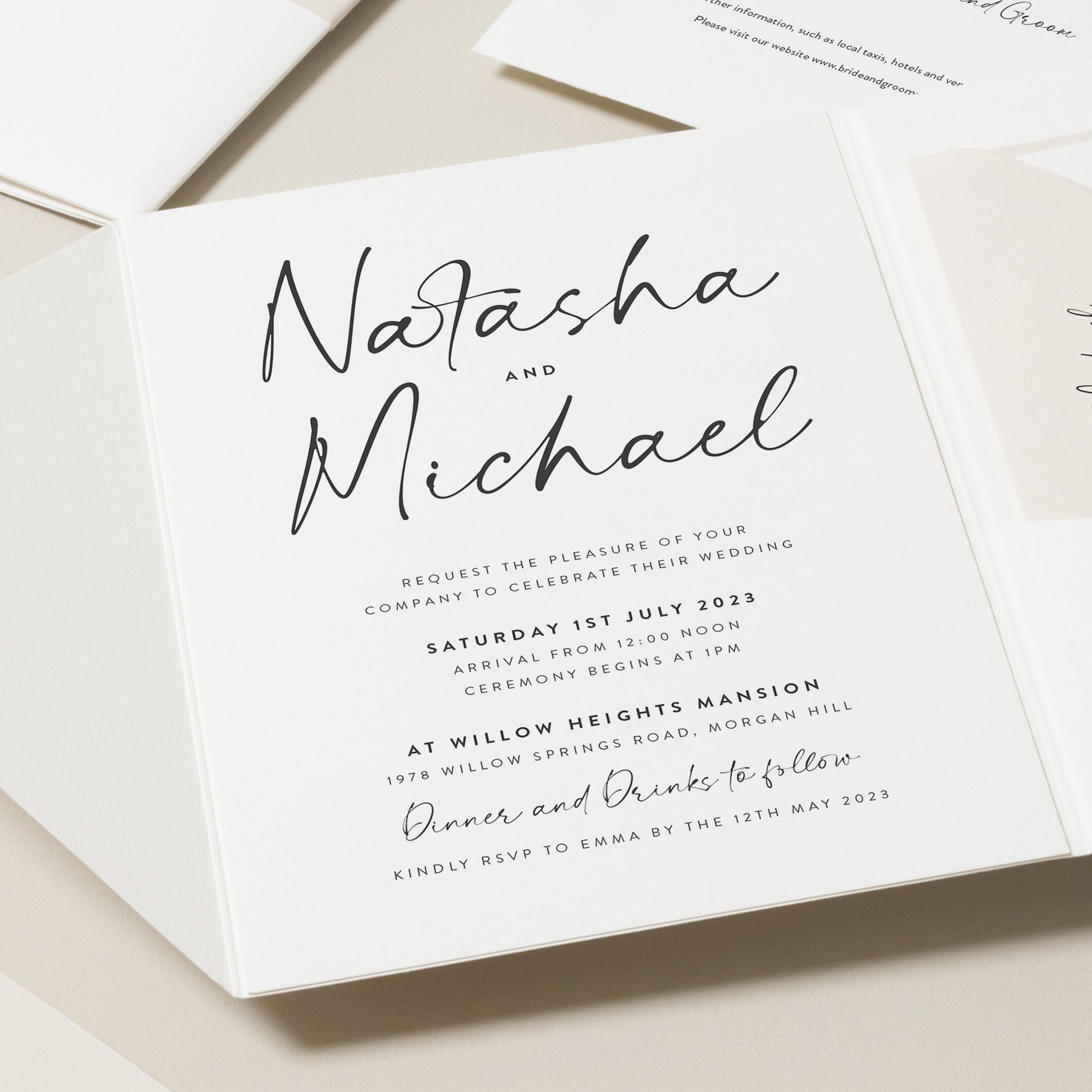 Ready to make a statement? Let's create your dream wedding invite! Our unique quote link for this design is quote.link/natasha-pocketfold, all you need to do is pop it into your URL and it will offer you all the options to add to make it personal.
