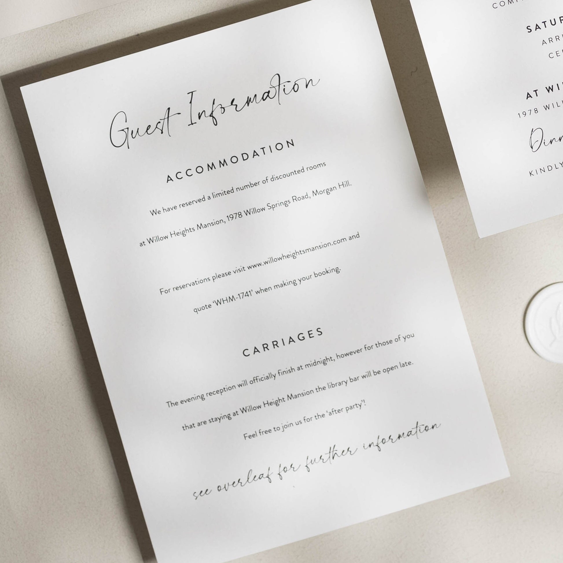 INFO CARDS: Useful for additional info such as taxi numbers, hotels, gift lists, poem's and more.