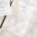 VELLUM JACKETS: Our translucent vellum jackets wrap around your invitations to add interest, texture and intrigue.