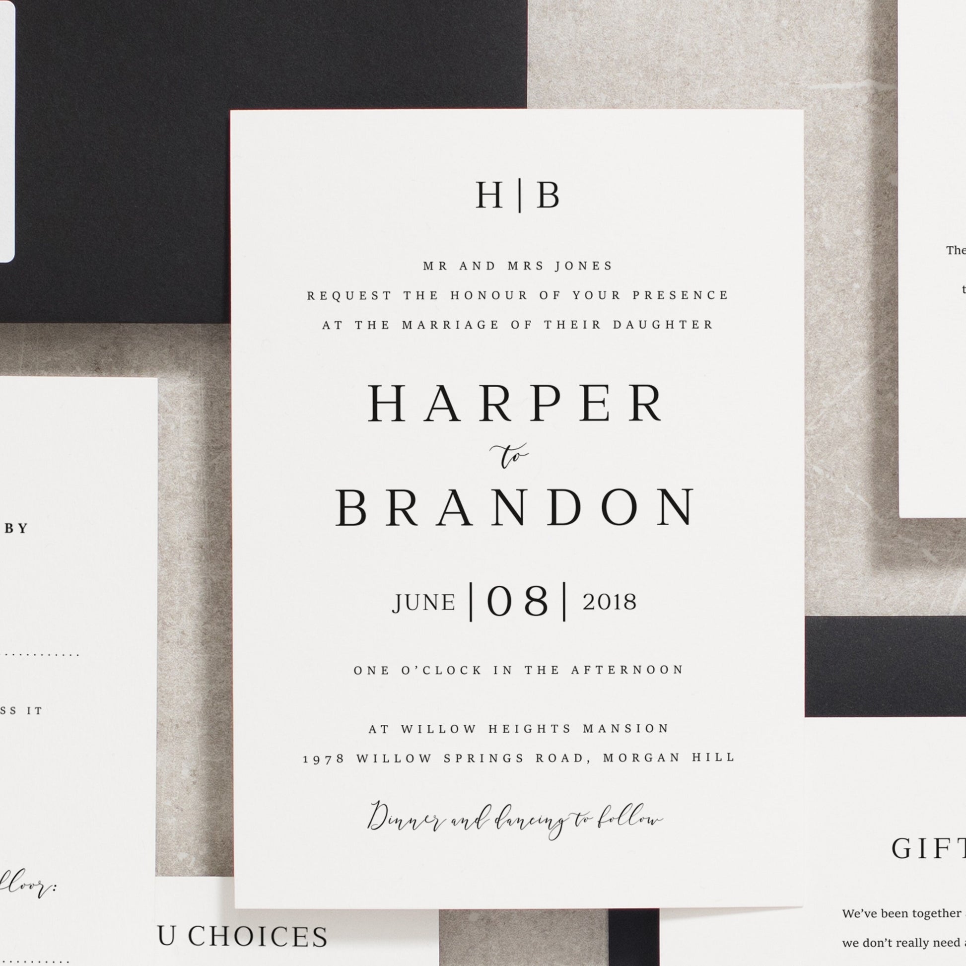 Ready to make a statement? Let's create your dream wedding invite! Our unique quote link for this design is quote.link/harper-postcard, all you need to do is pop it into your URL and it will offer you all the options to add to make it personal.
