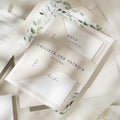 VELLUM JACKETS: Our translucent vellum jackets wrap around your invitations to add interest, texture and intrigue.