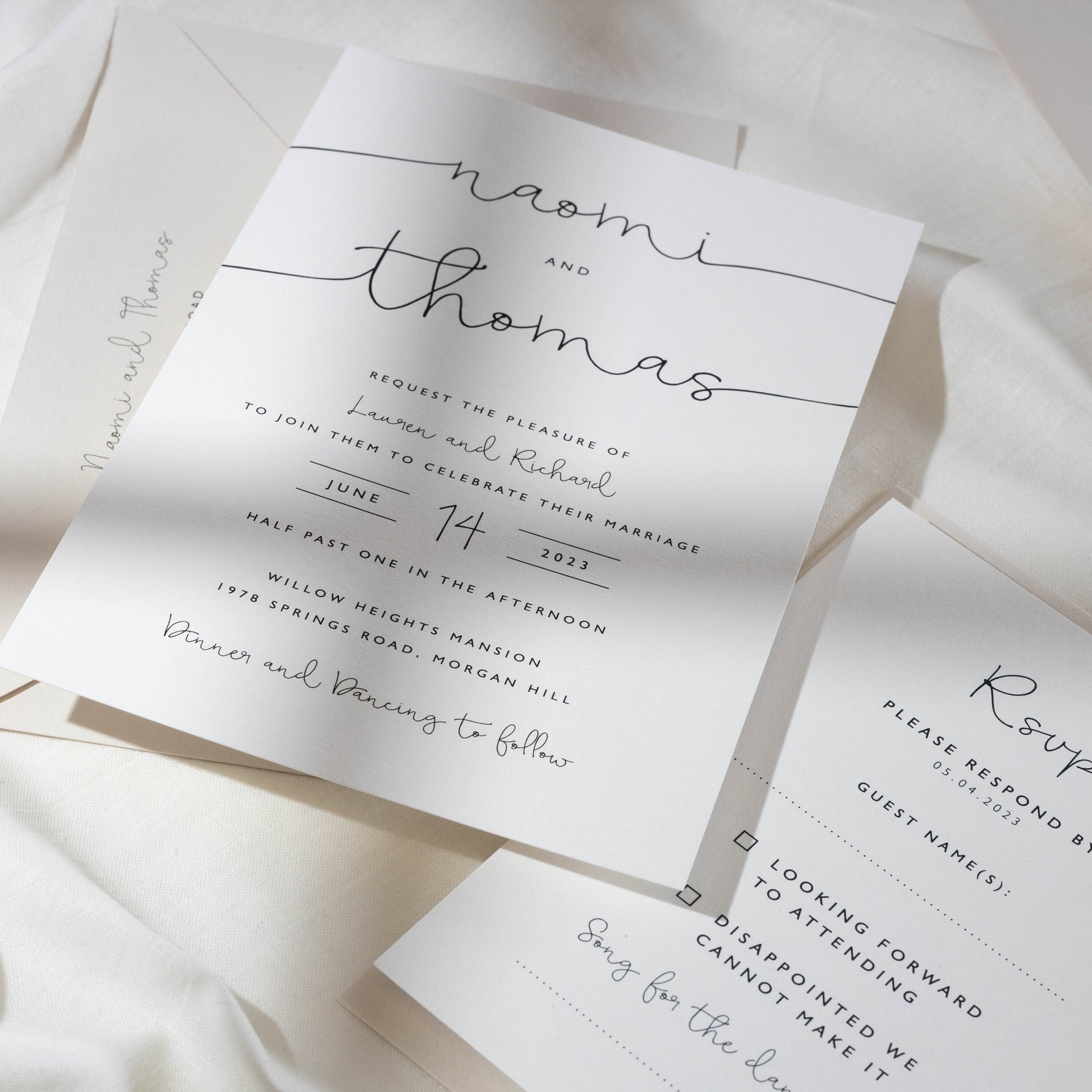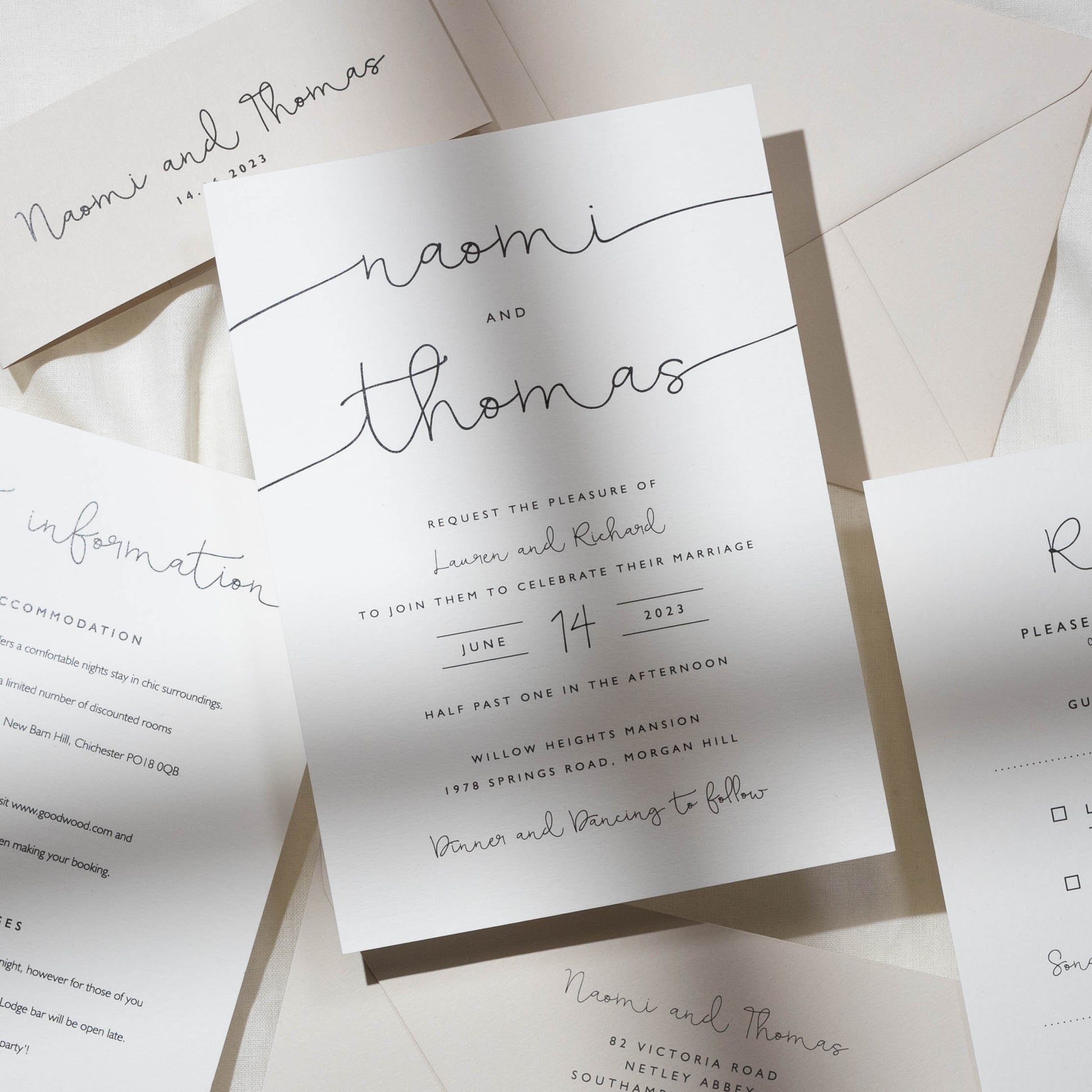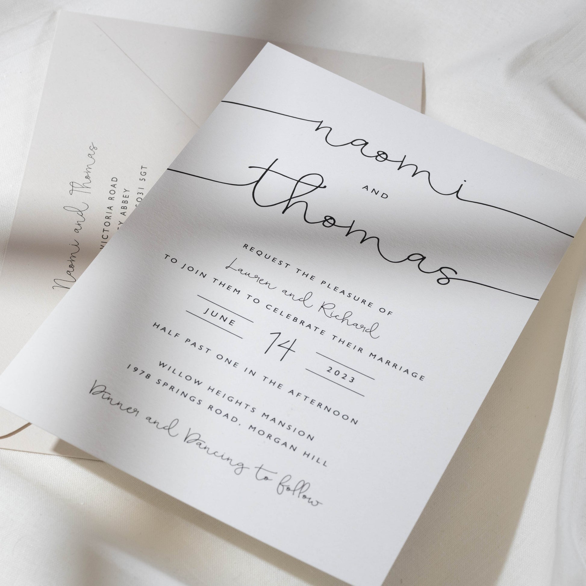Ready to make a statement? Let's create your dream wedding invite! Our unique quote link for this design is quote.link/naomi-postcard, all you need to do is pop it into your URL and it will offer you all the options to add to make it personal.