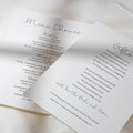 INFO CARDS: Useful for additional info such as taxi numbers, hotels, gift lists, poem's and more.