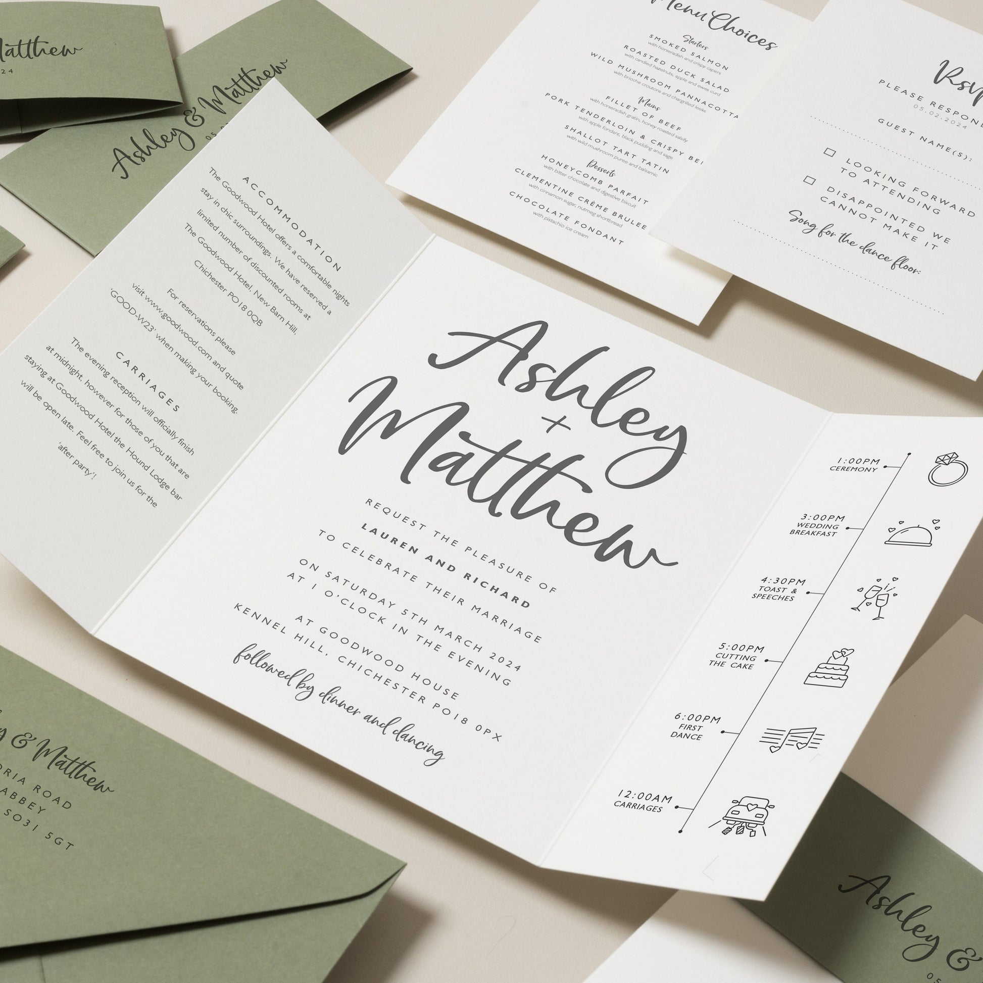 Ready to make a statement? Let's create your dream wedding invite! Our unique quote link for this design is quote.link/ashley-gatefold, all you need to do is pop it into your URL and it will offer you all the options to add to make it personal.