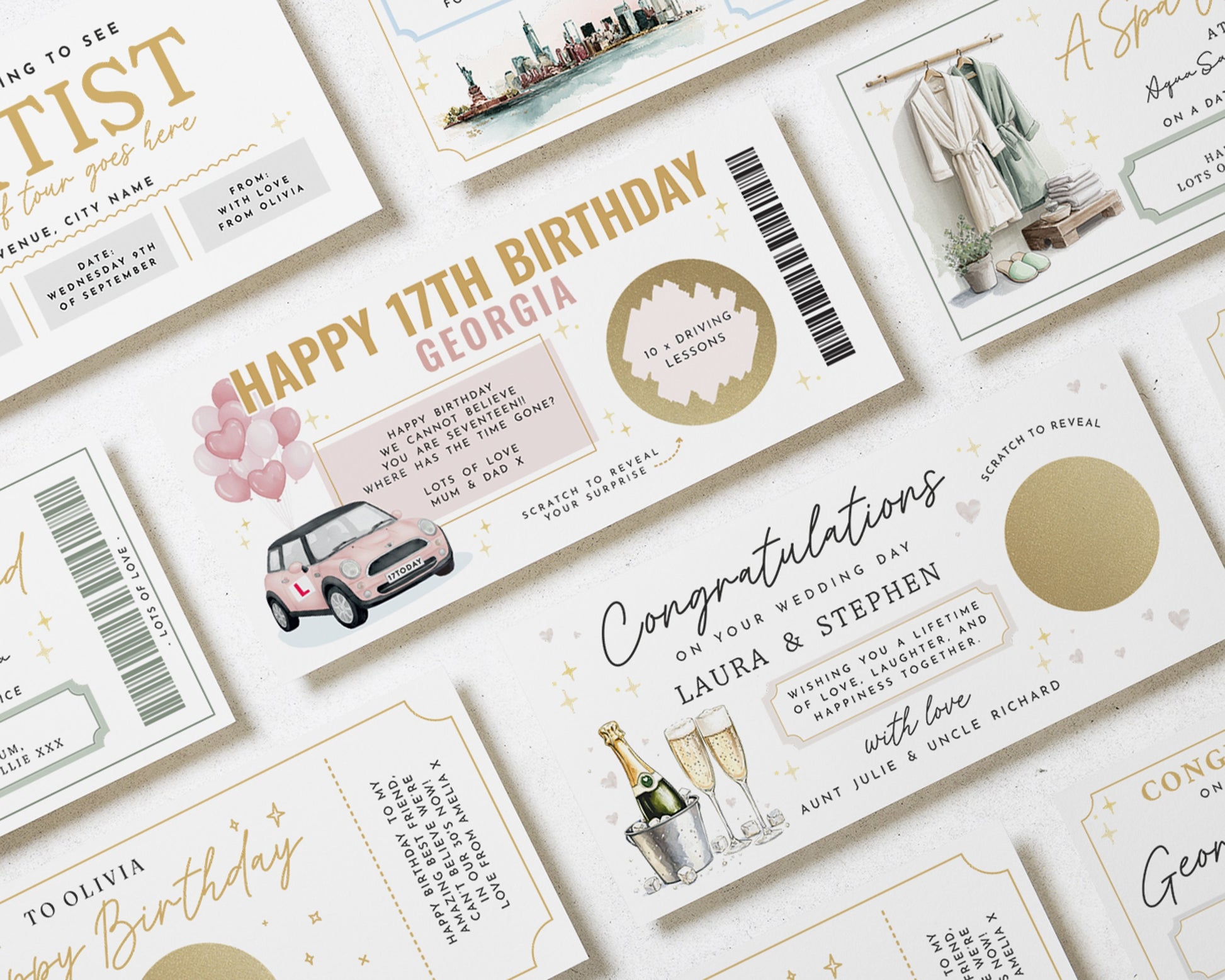 • Each voucher card measures 210x99mm, and is printed on heavyweight premium cardstock.
