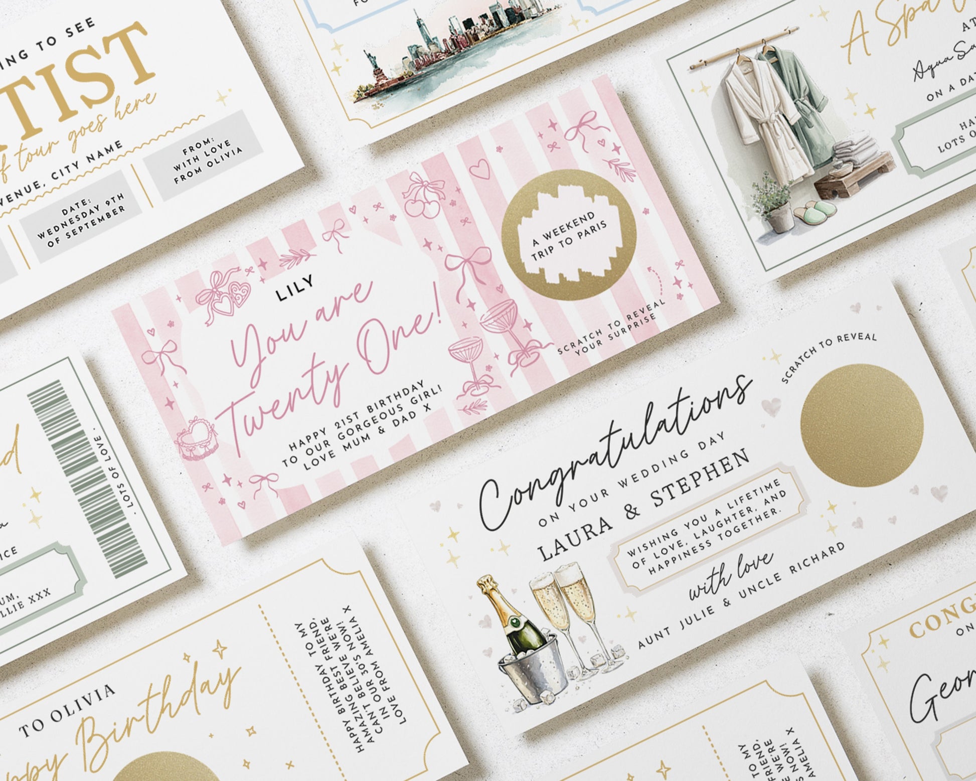 • Each voucher card measures 210x99mm, and is printed on heavyweight premium cardstock.