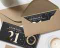 • Each voucher card measures 210x99mm, and is printed on heavyweight premium cardstock and finished with real gold foil detailing for a luxurious touch.