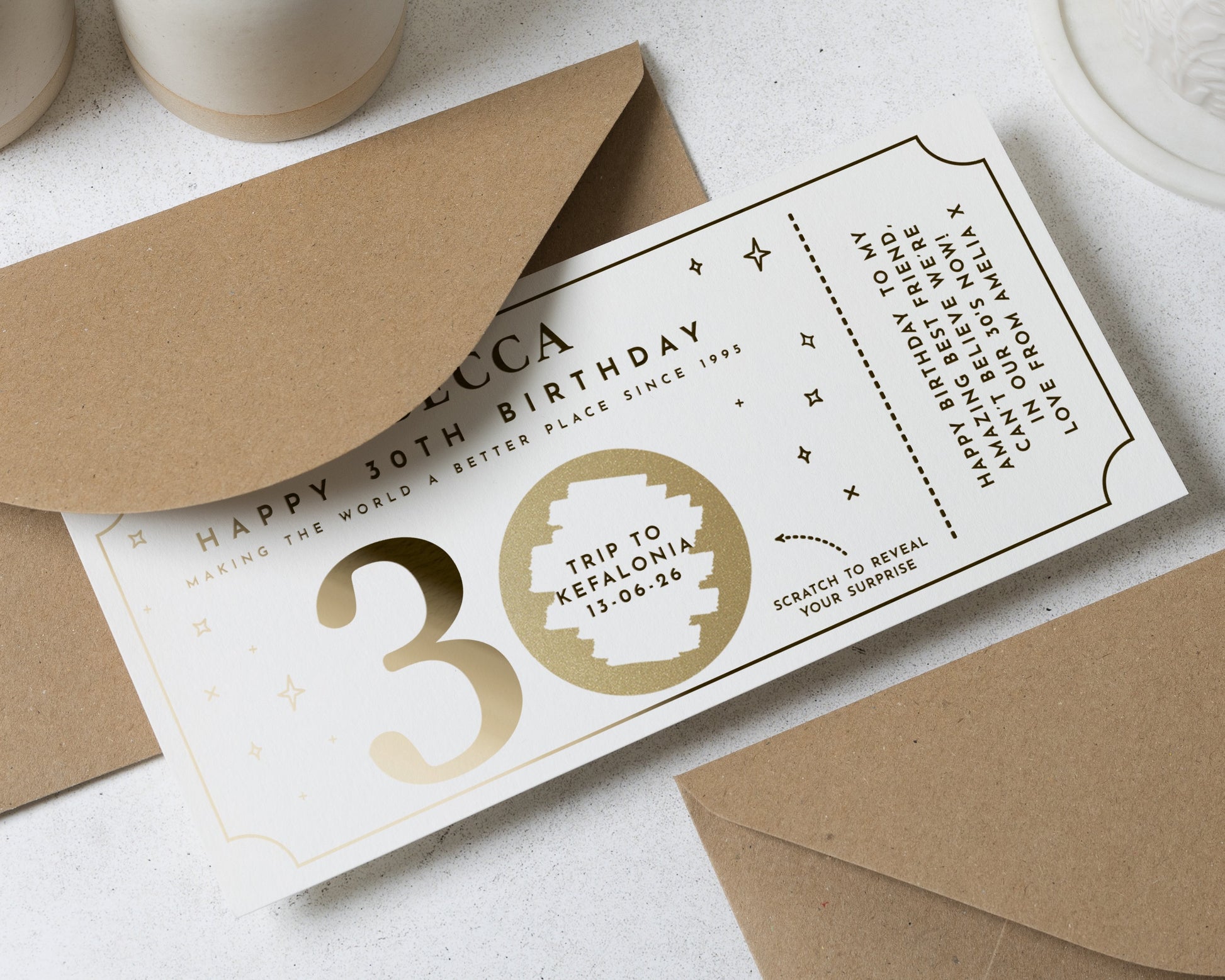 • Every voucher comes complete with a recycled Kraft envelope, ready to gift.