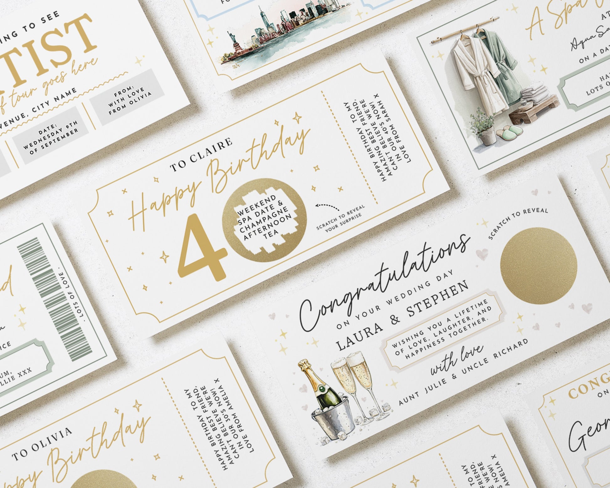 • Each voucher card measures 210x99mm, and is printed on heavyweight premium cardstock.