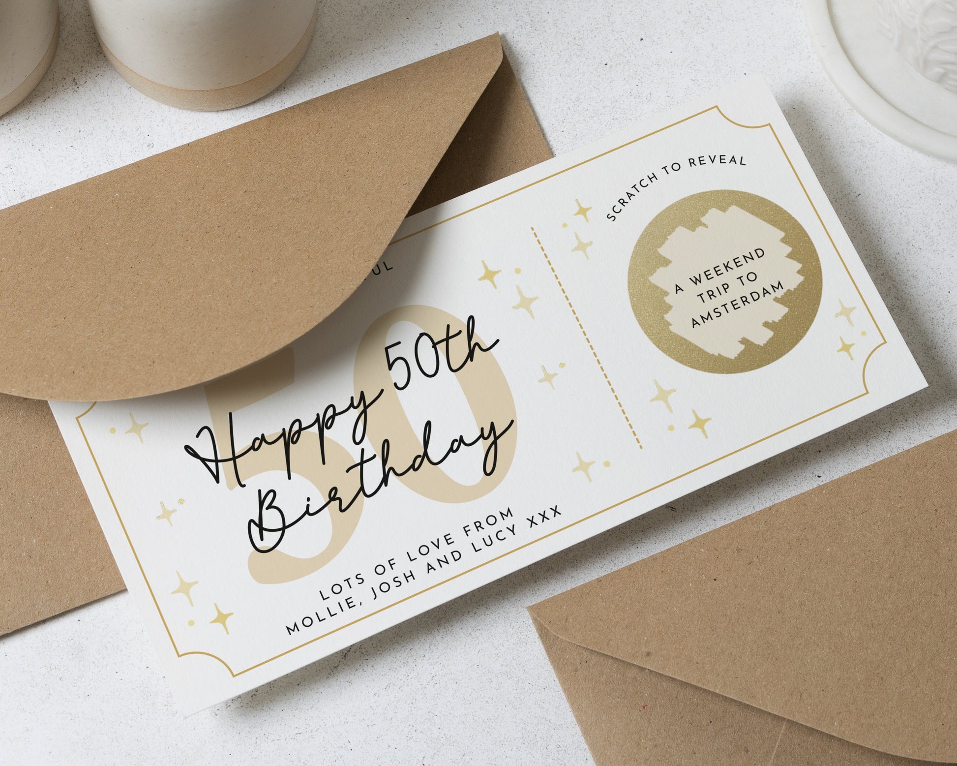 • Every voucher comes complete with a recycled Kraft envelope, ready to gift.