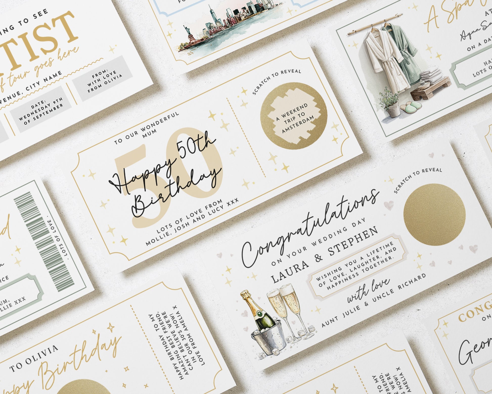 • Each voucher card measures 210x99mm, and is printed on heavyweight premium cardstock.