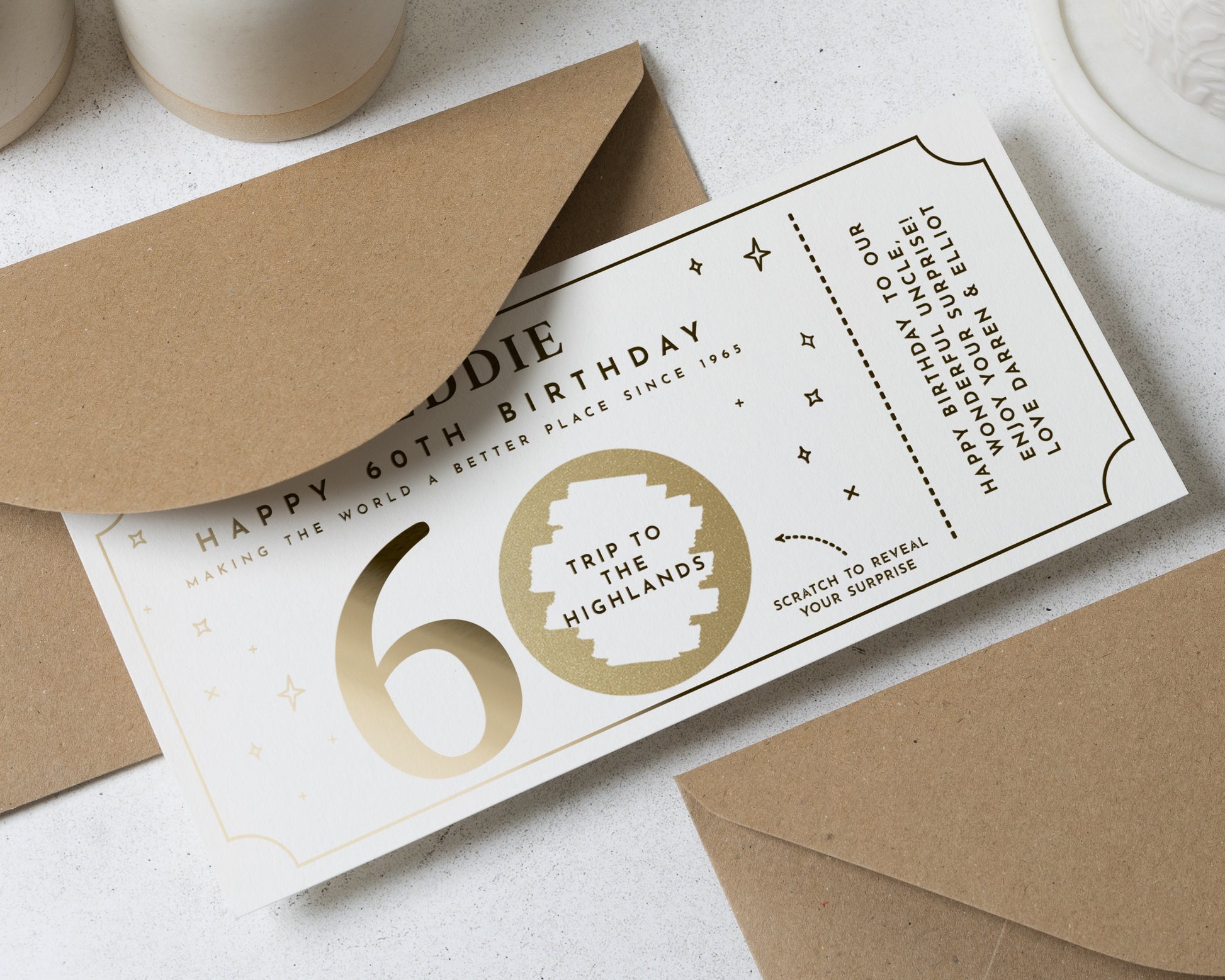 Personalised 60th Birthday Gift Voucher, Scratch To Reveal, Trip Gift For Him, Gold Foil Birthday Experience
