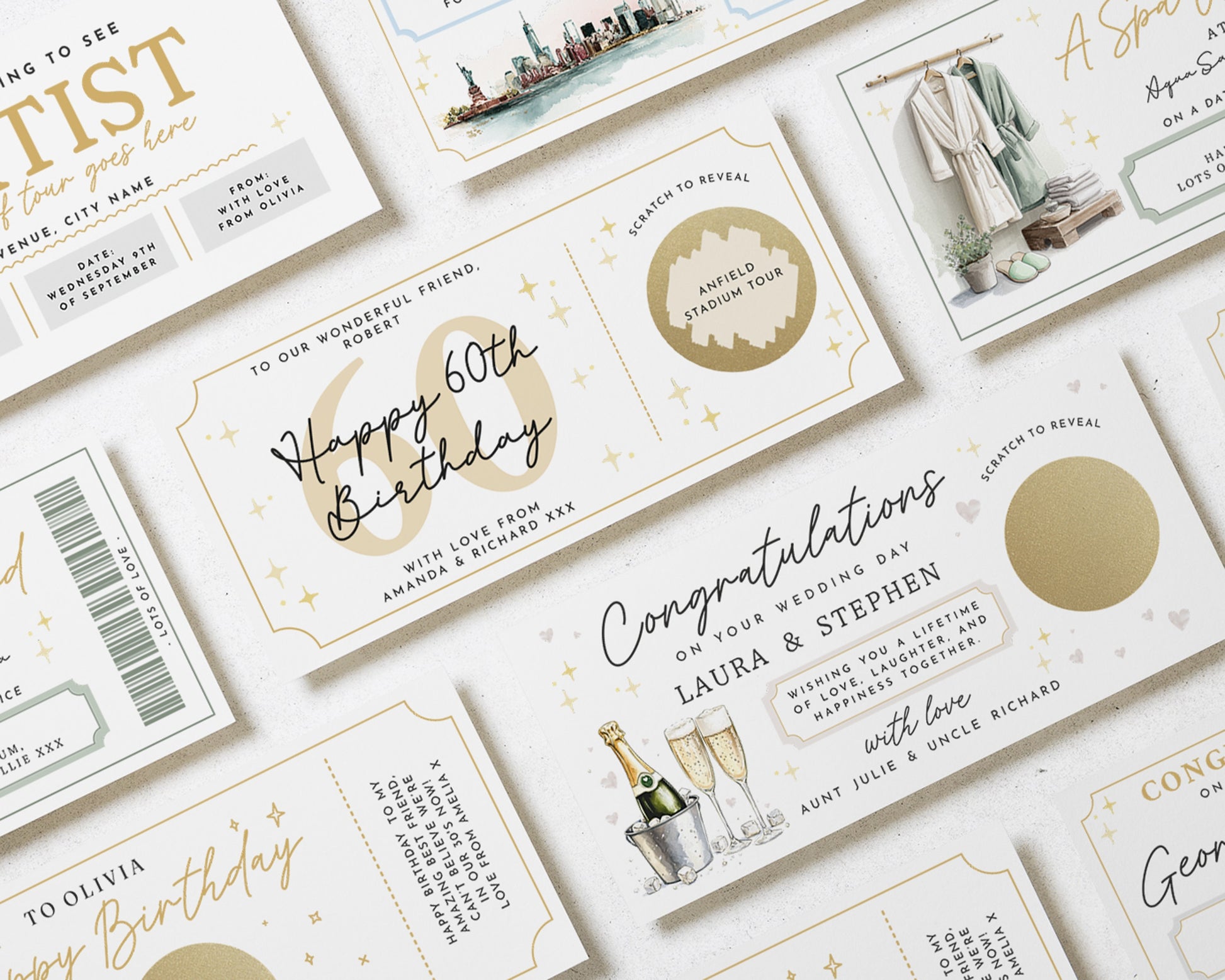 • Each voucher card measures 210x99mm, and is printed on heavyweight premium cardstock.