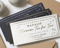• Each voucher card measures 210x99mm, and is printed on heavyweight premium cardstock and finished with real gold foil detailing for a luxurious touch.