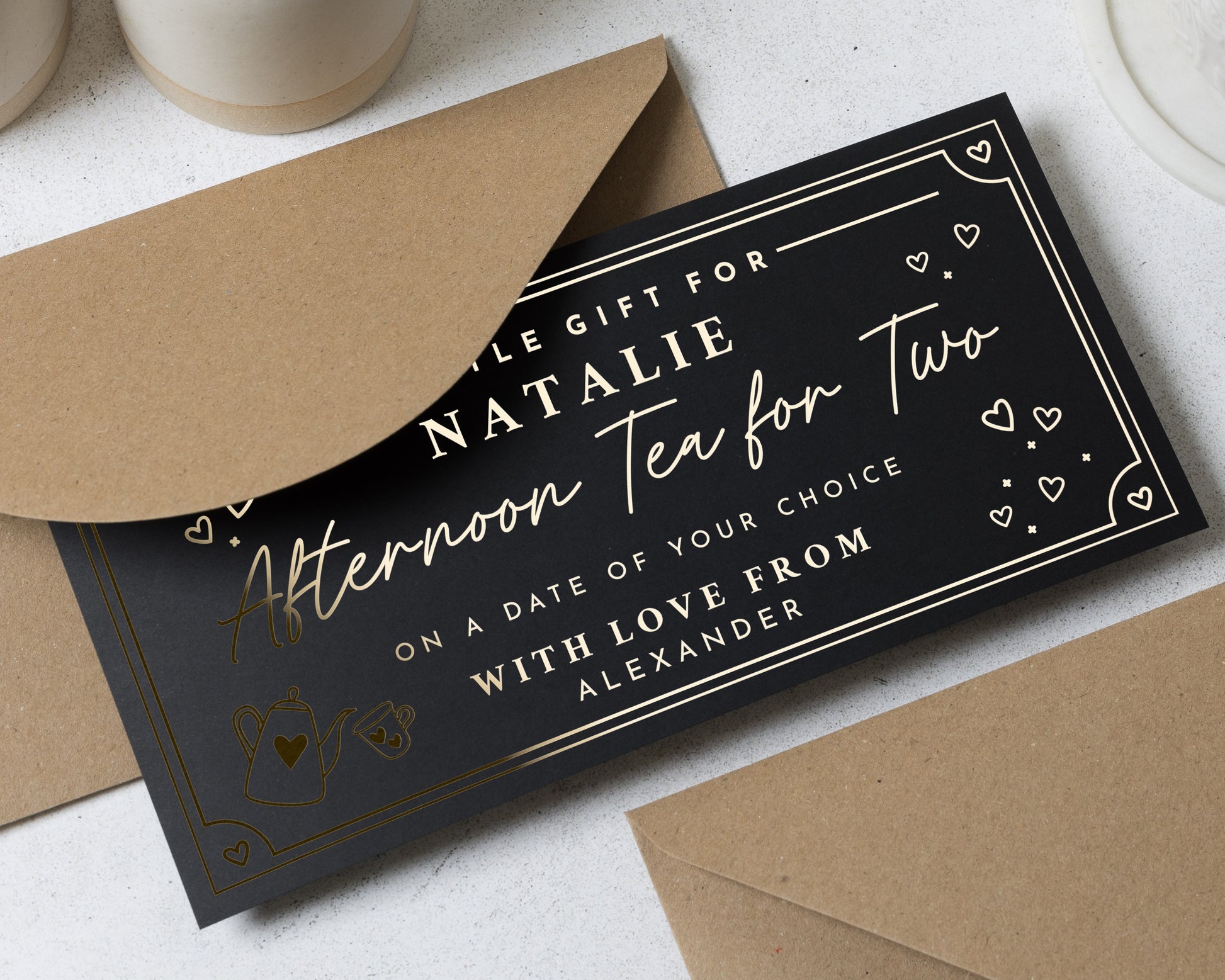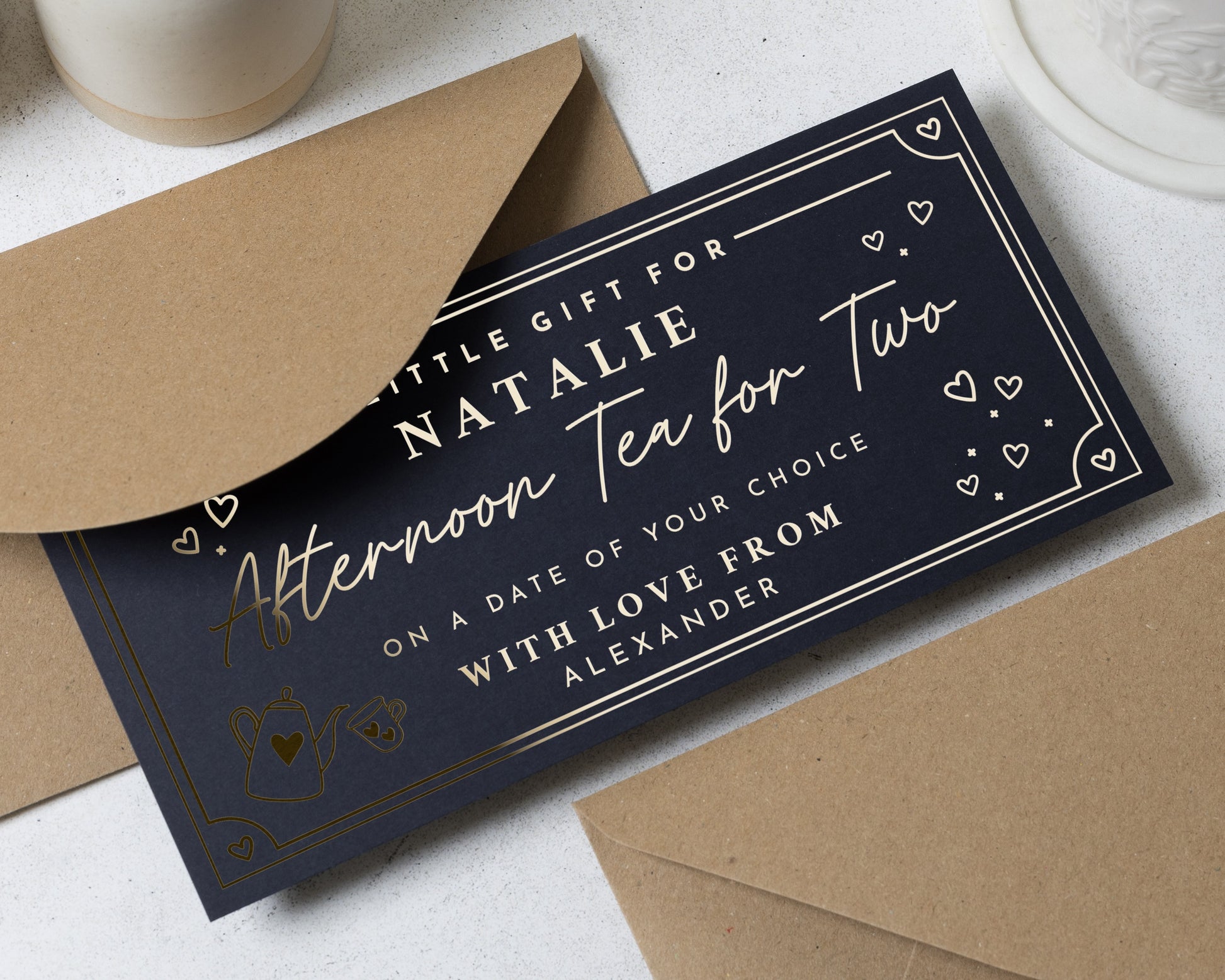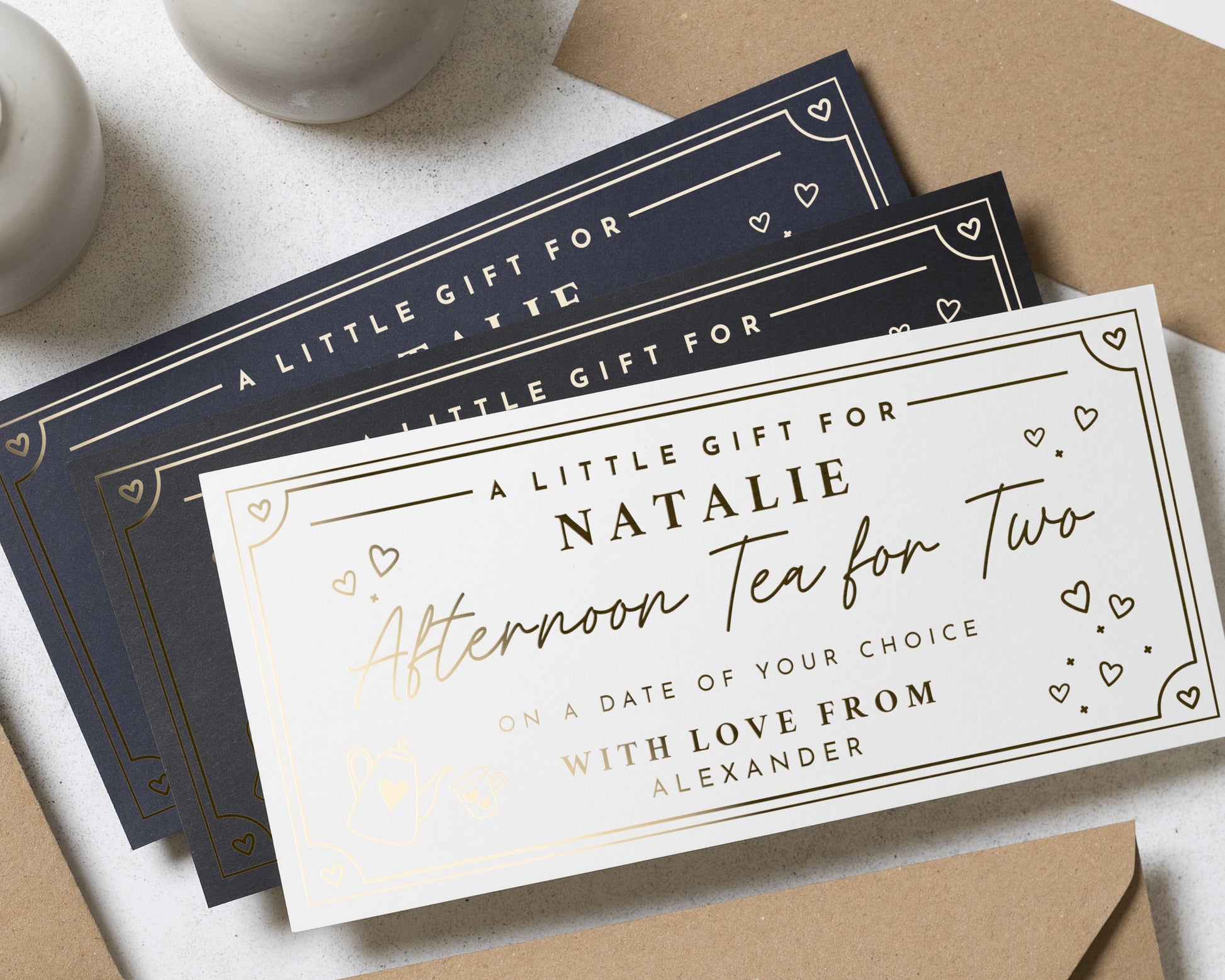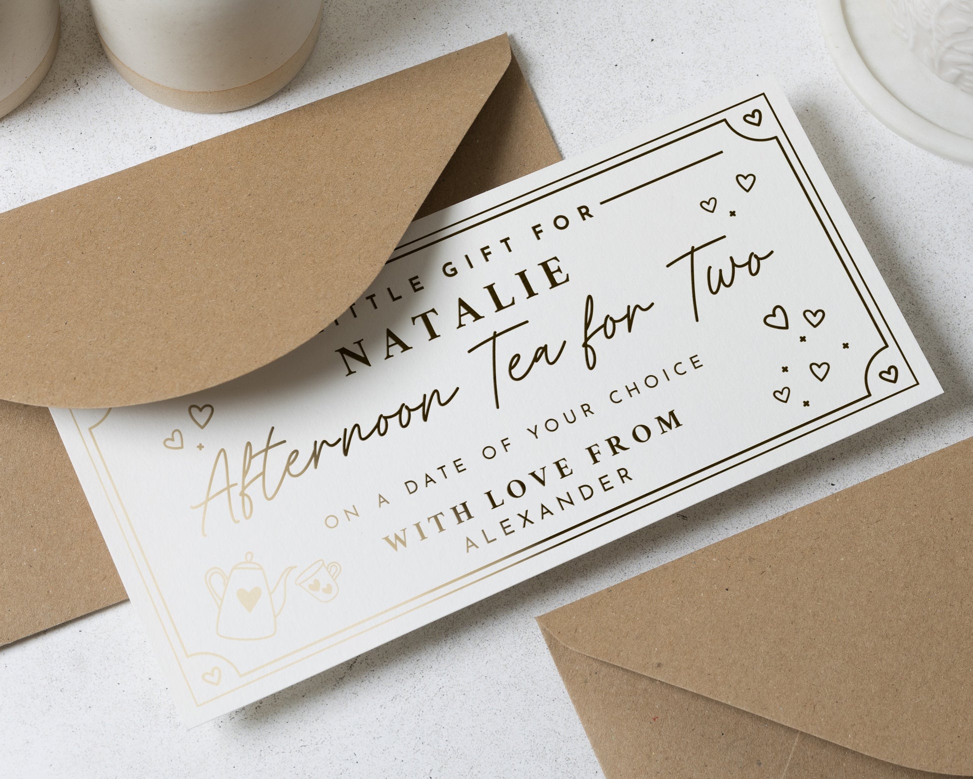 Personalised Afternoon Tea Gift Voucher, Afternoon Tea For Two, Gift Voucher For Her, Gold Foil Gift, Custom Experience Voucher