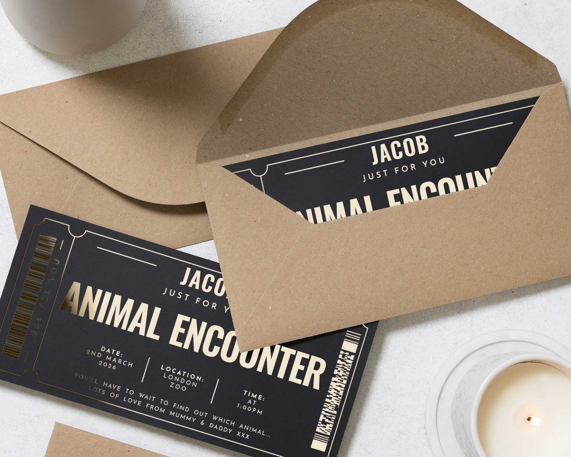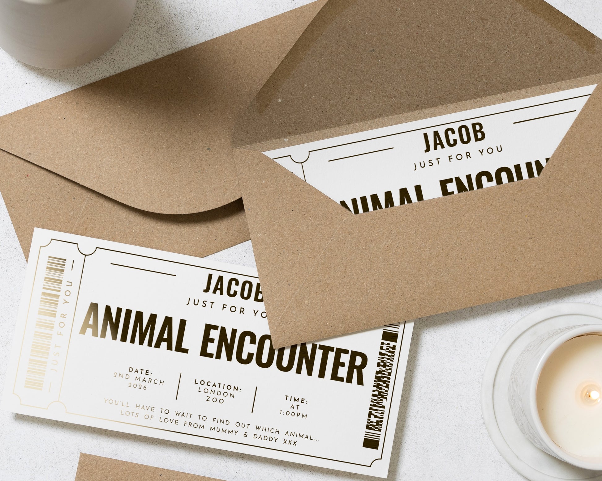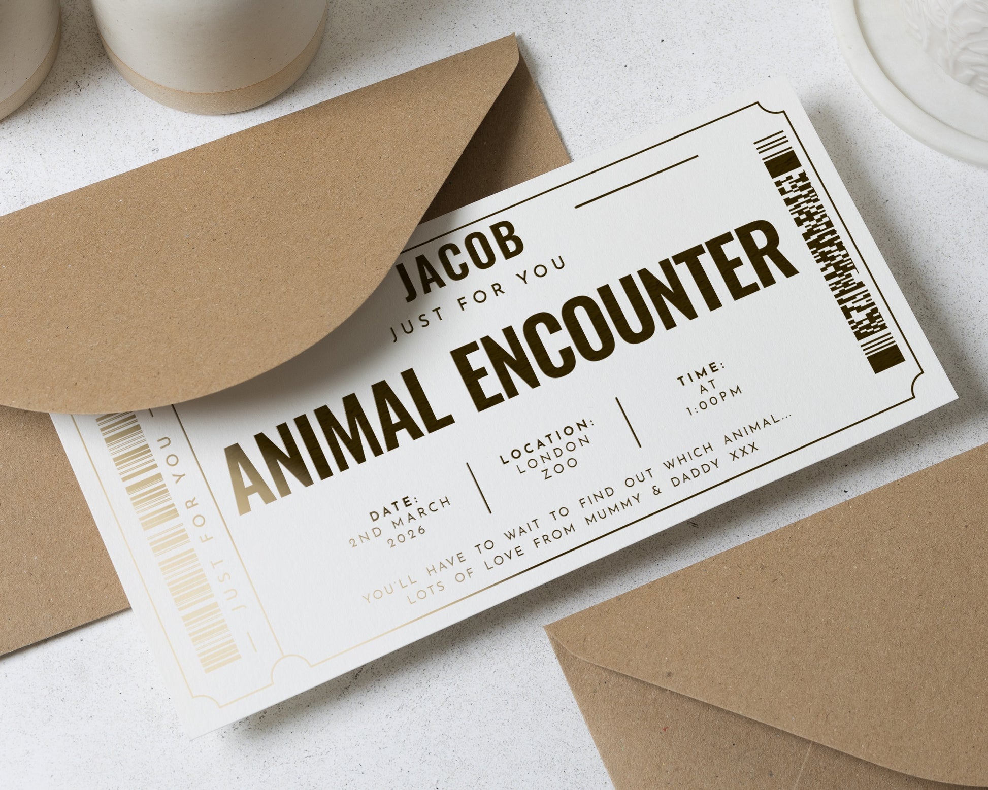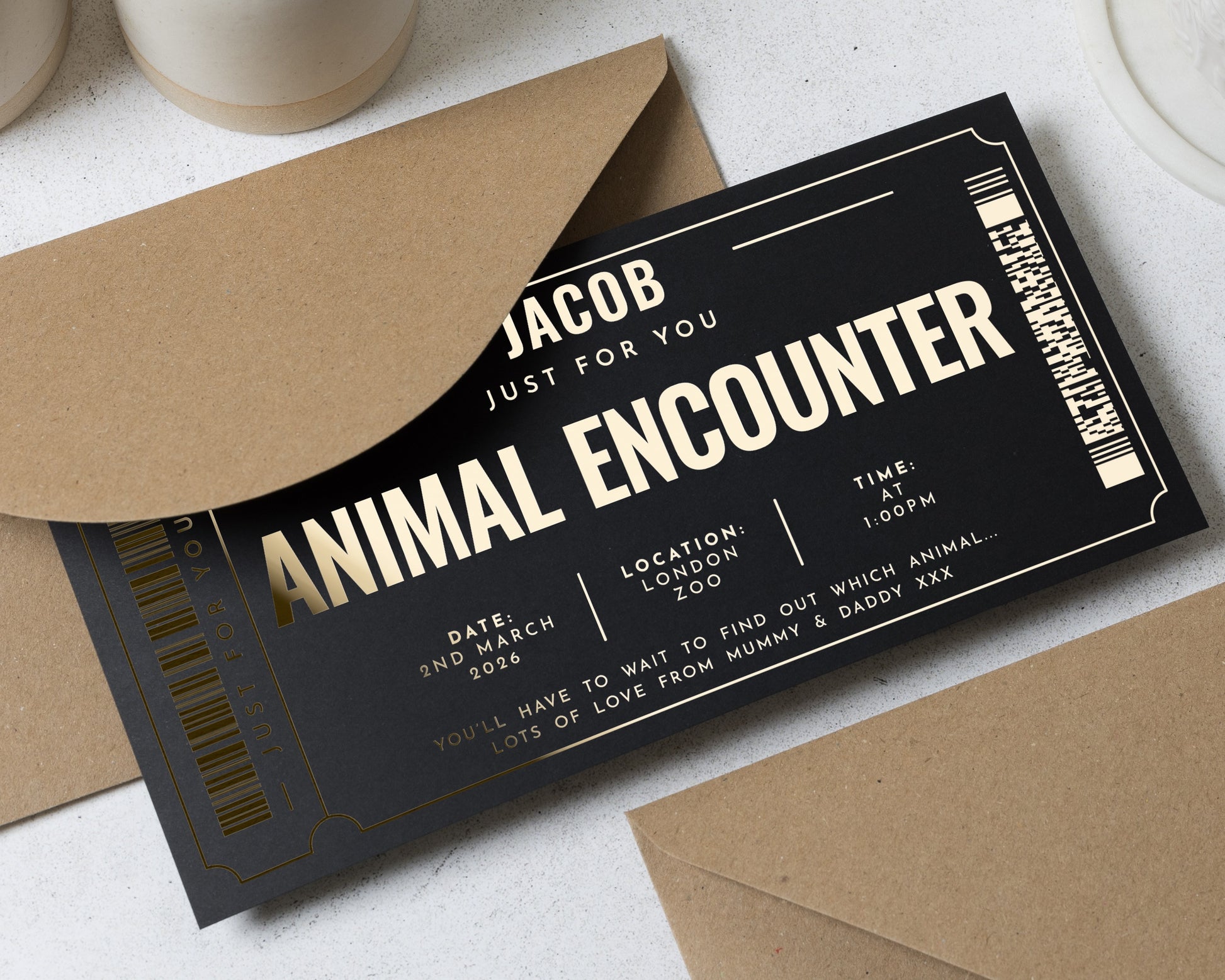 Personalised Animal Encounter Gift Voucher, Gold Foil Experience Ticket, Custom Zoo Day Gift, Scratch To Reveal