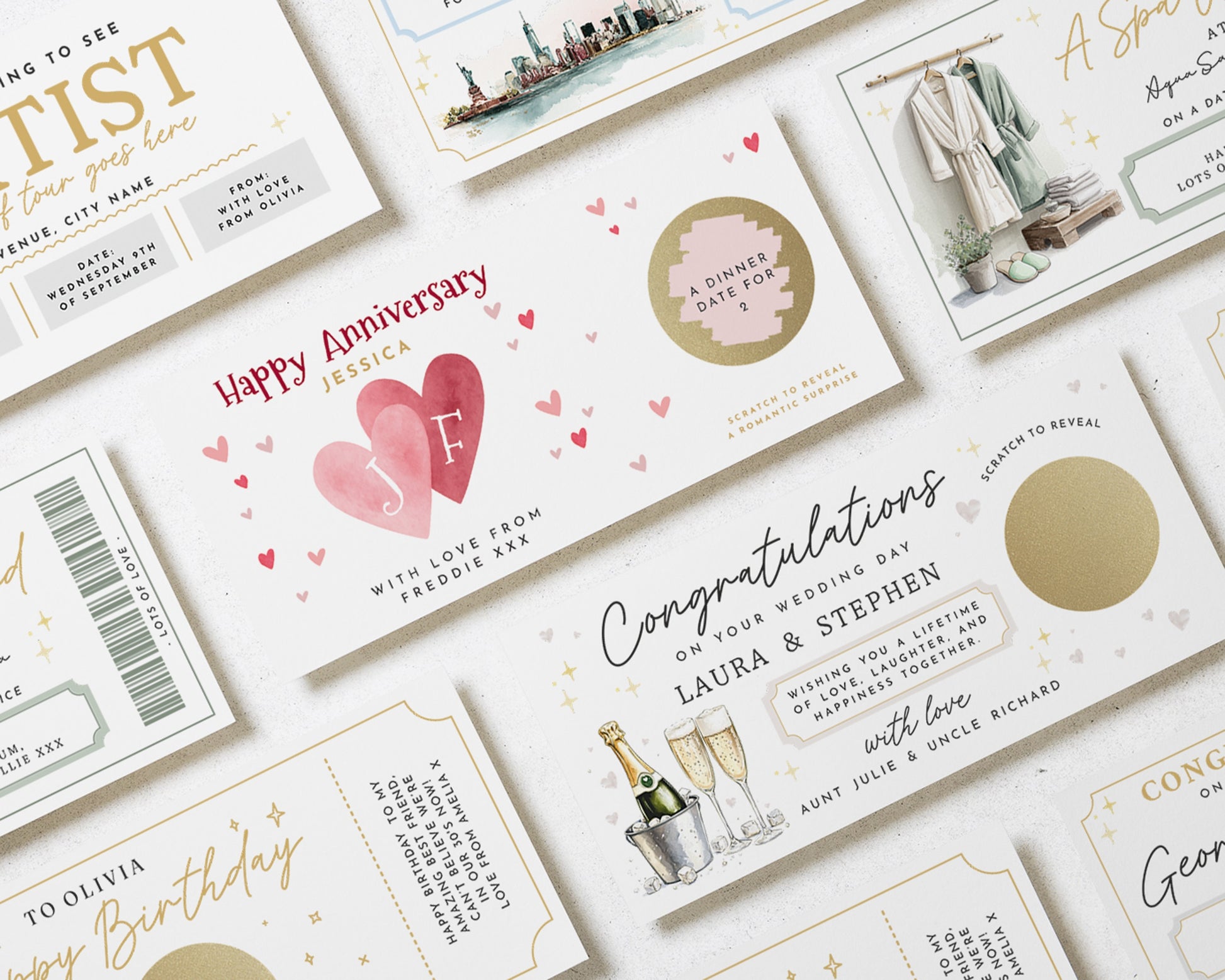 • Each voucher card measures 210x99mm, and is printed on heavyweight premium cardstock.
