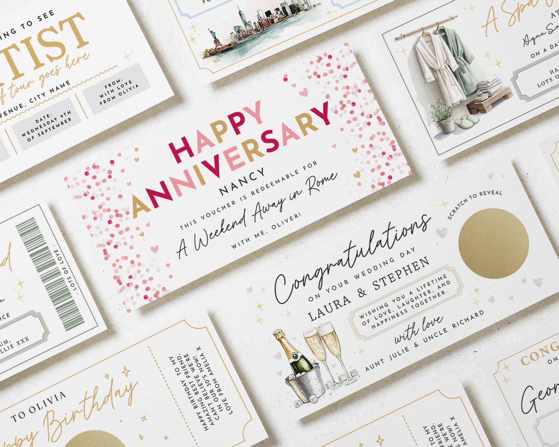 • Each voucher card measures 210x99mm, and is printed on heavyweight premium cardstock.
