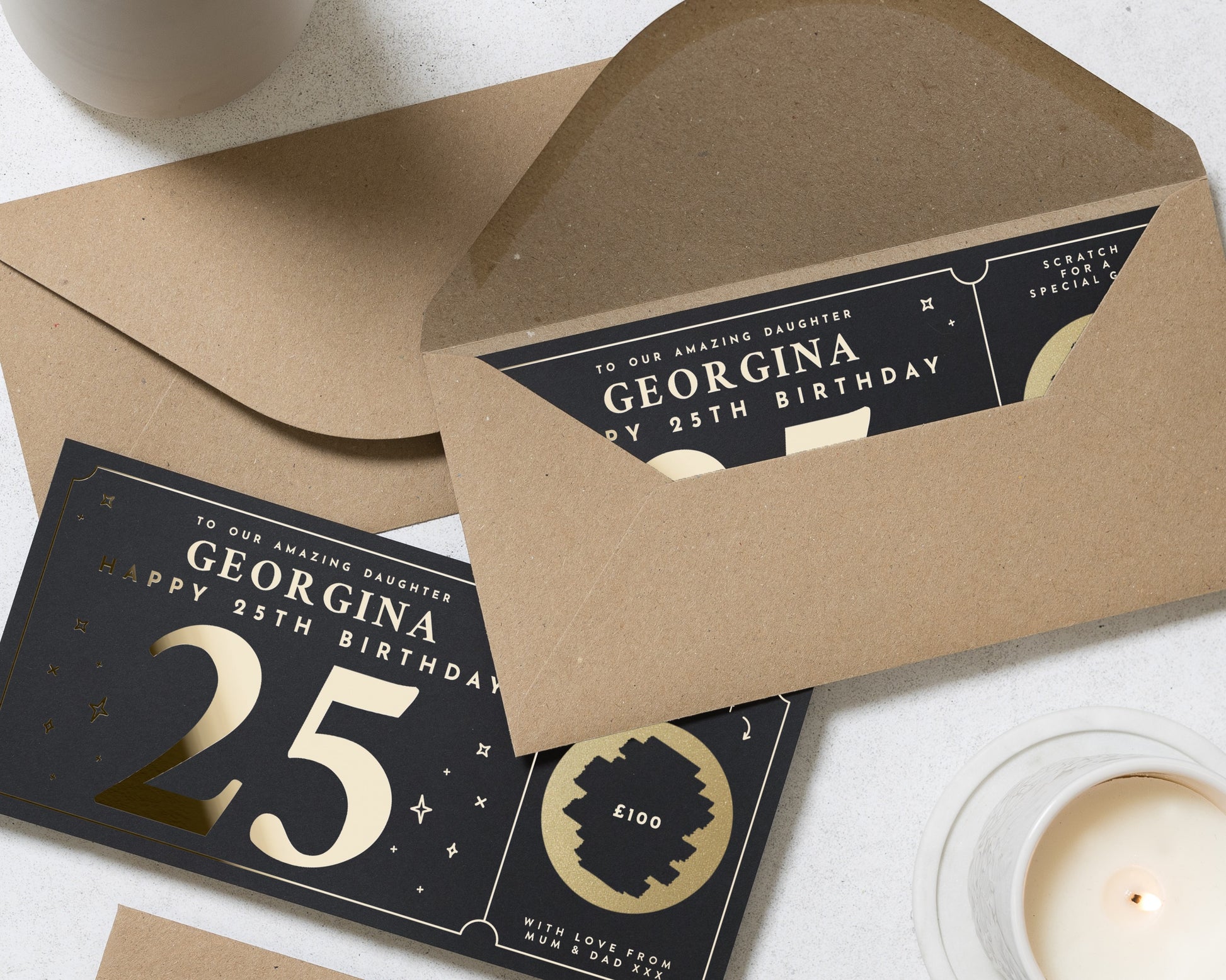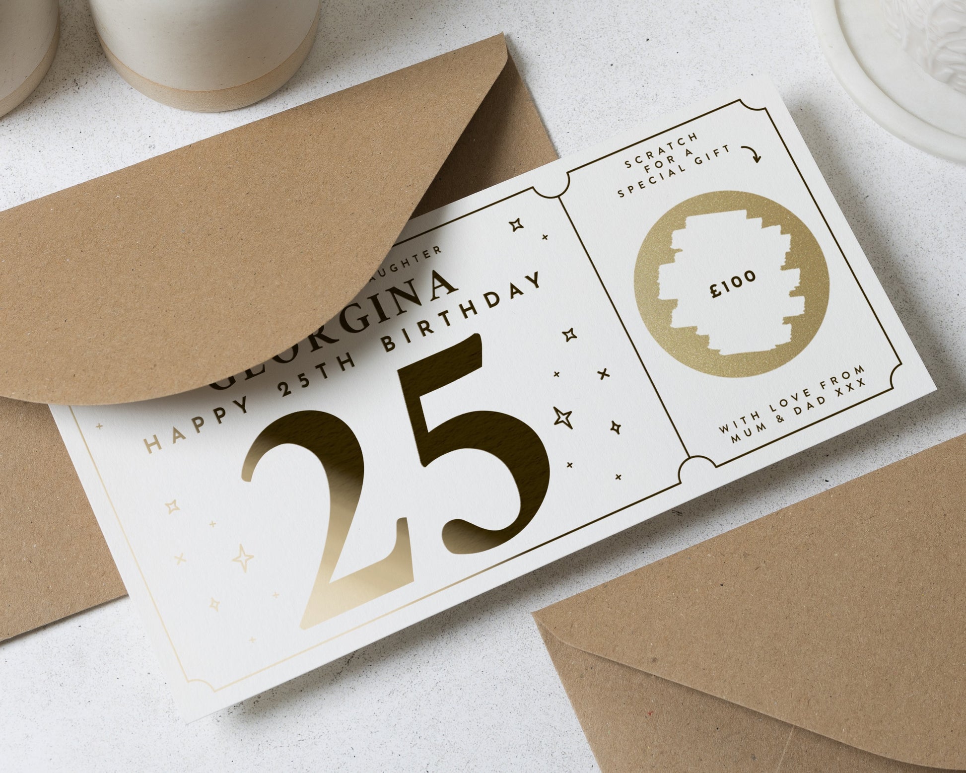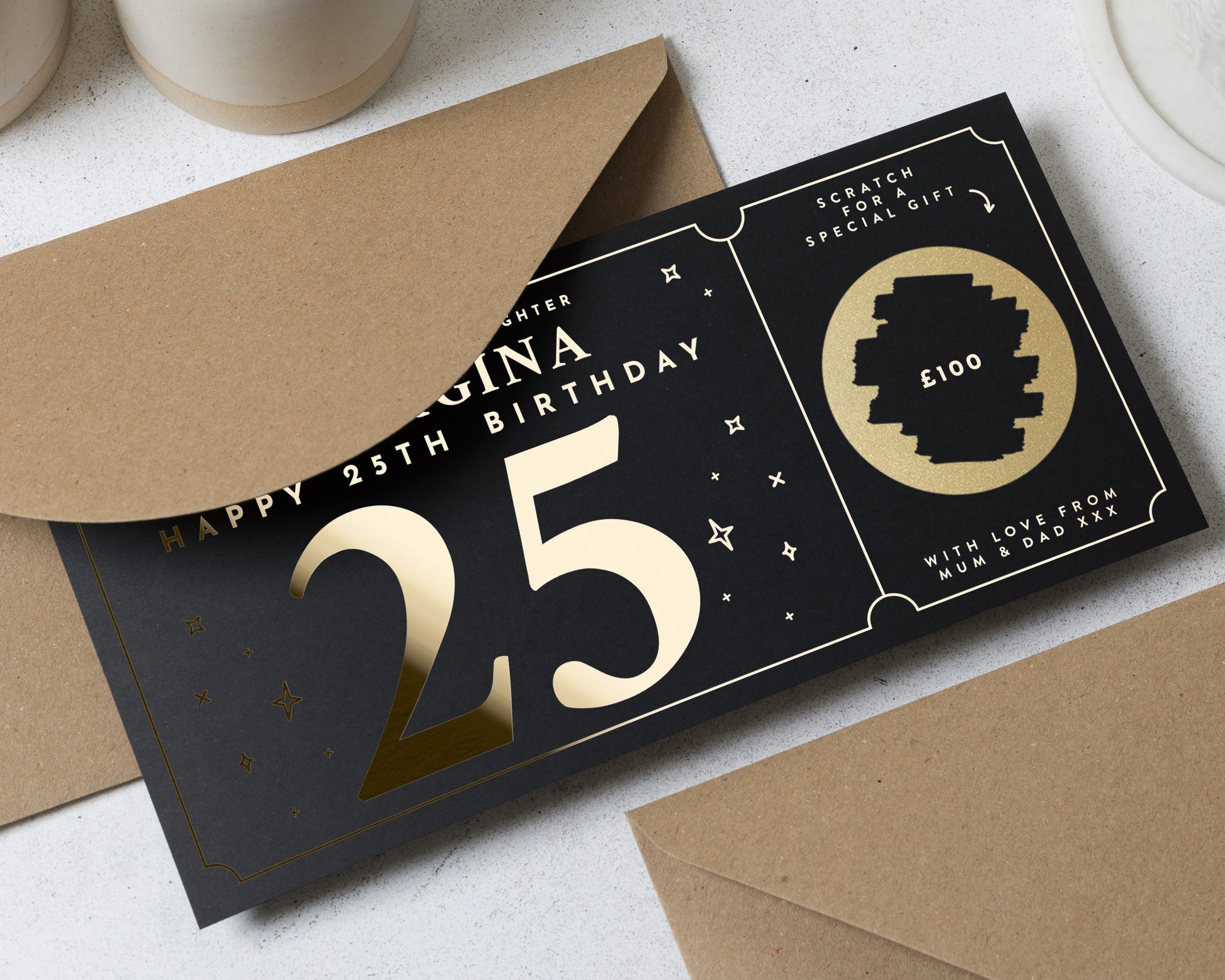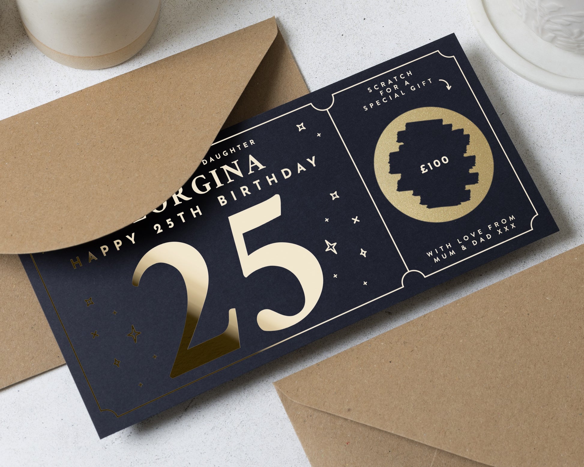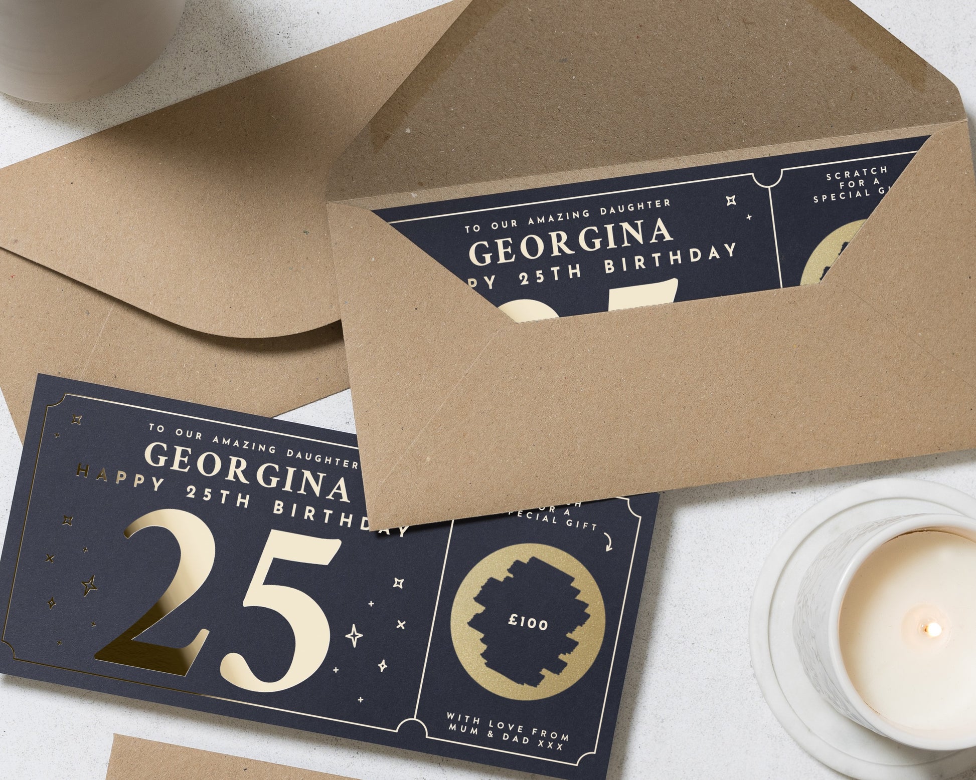 Personalised Birthday Gift Voucher, Scratch To Reveal, Gold Foil, For Daughter, Custom Birthday Card, 25th Birthday Gift