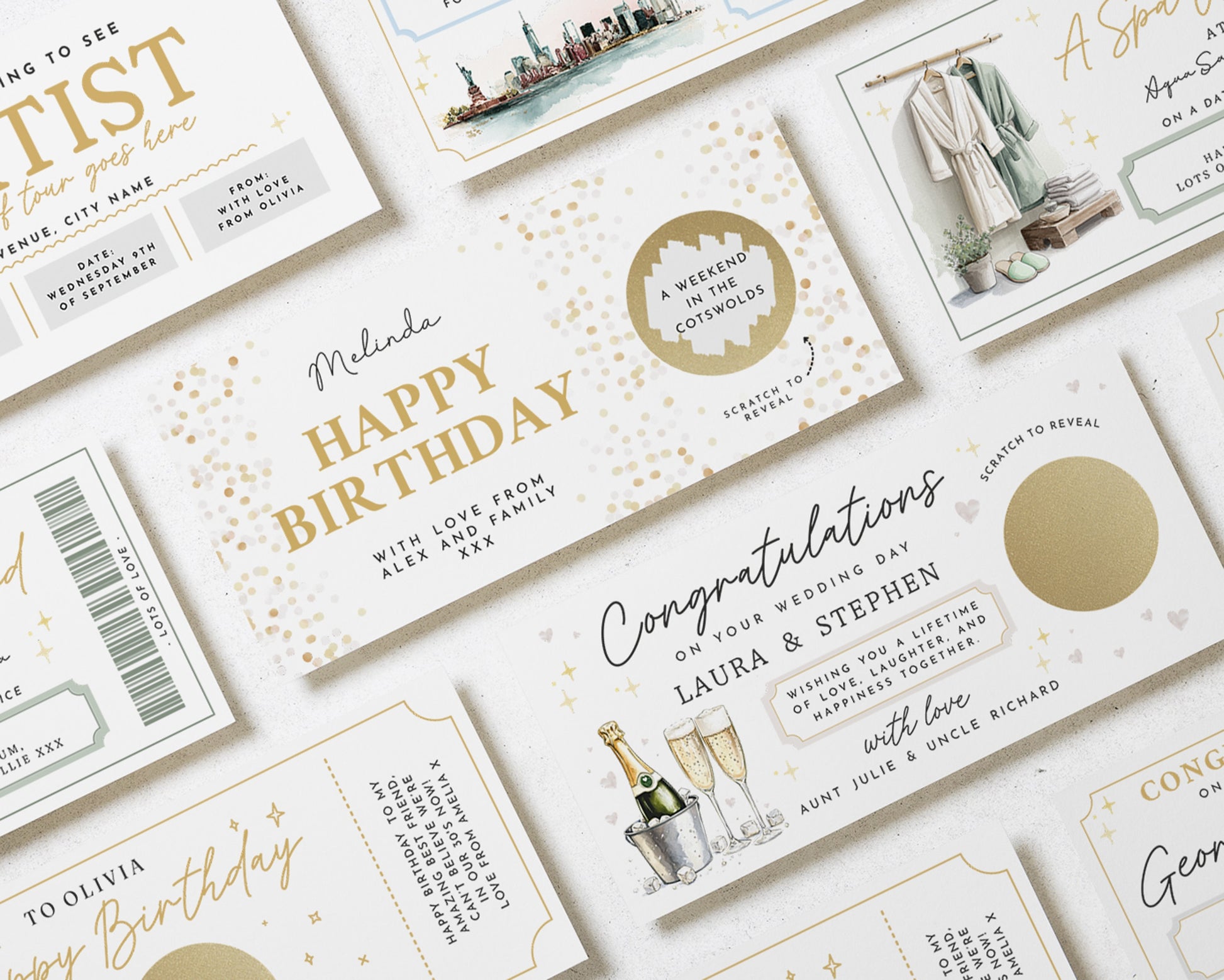 • Each voucher card measures 210x99mm, and is printed on heavyweight premium cardstock.