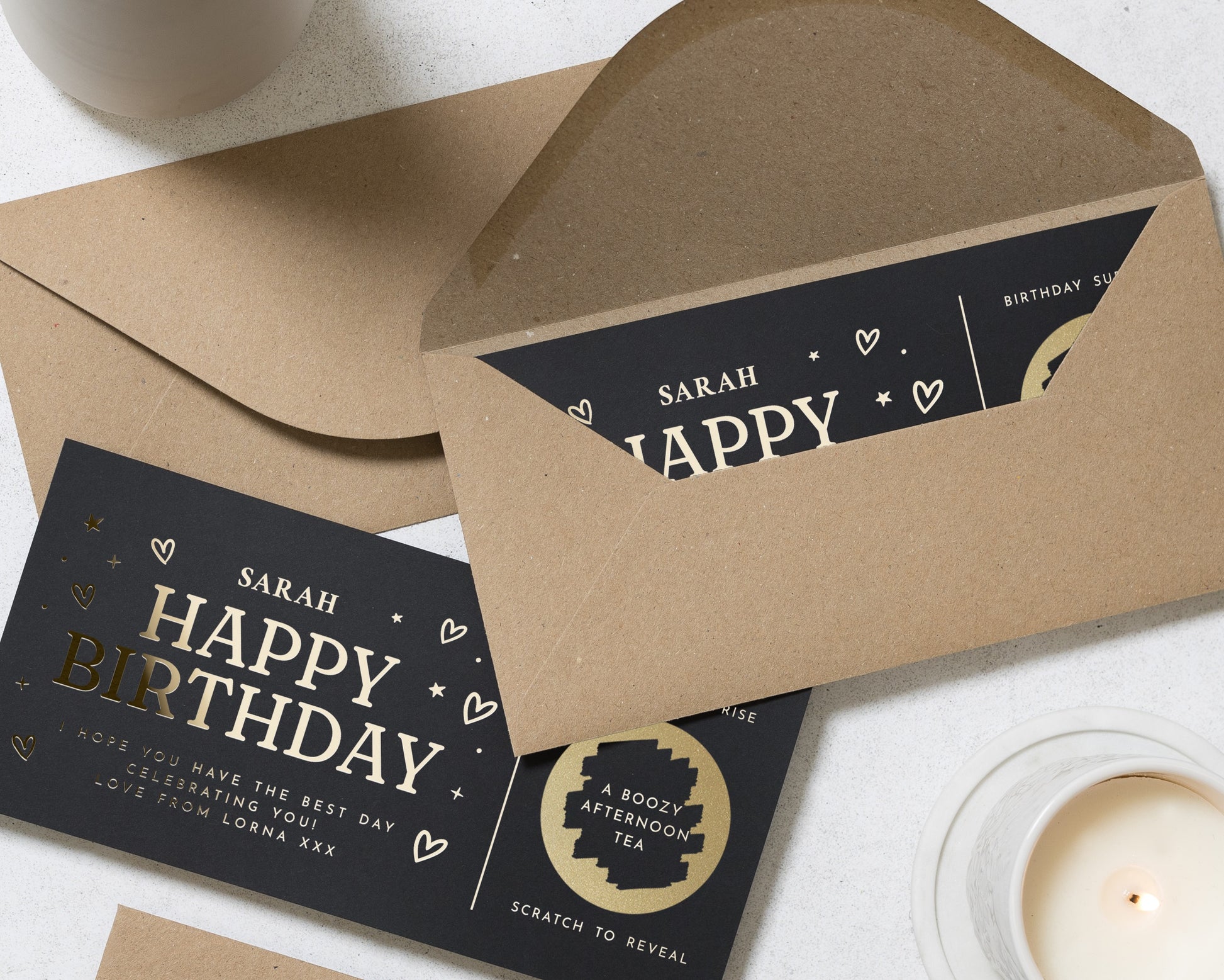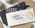 • Each voucher card measures 210x99mm, and is printed on heavyweight premium cardstock and finished with real gold foil detailing for a luxurious touch.