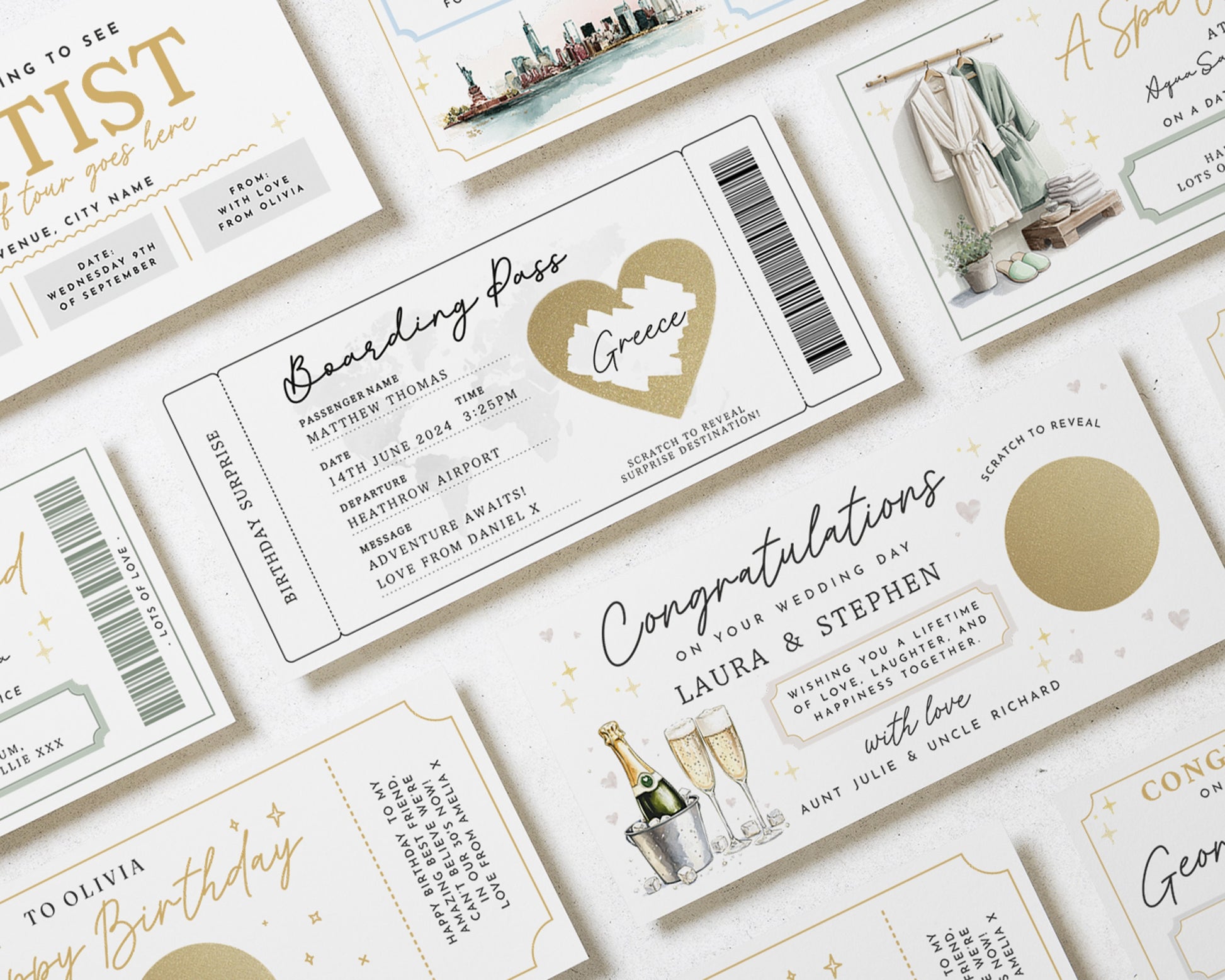 • Each voucher card measures 210x99mm, and is printed on heavyweight premium cardstock.