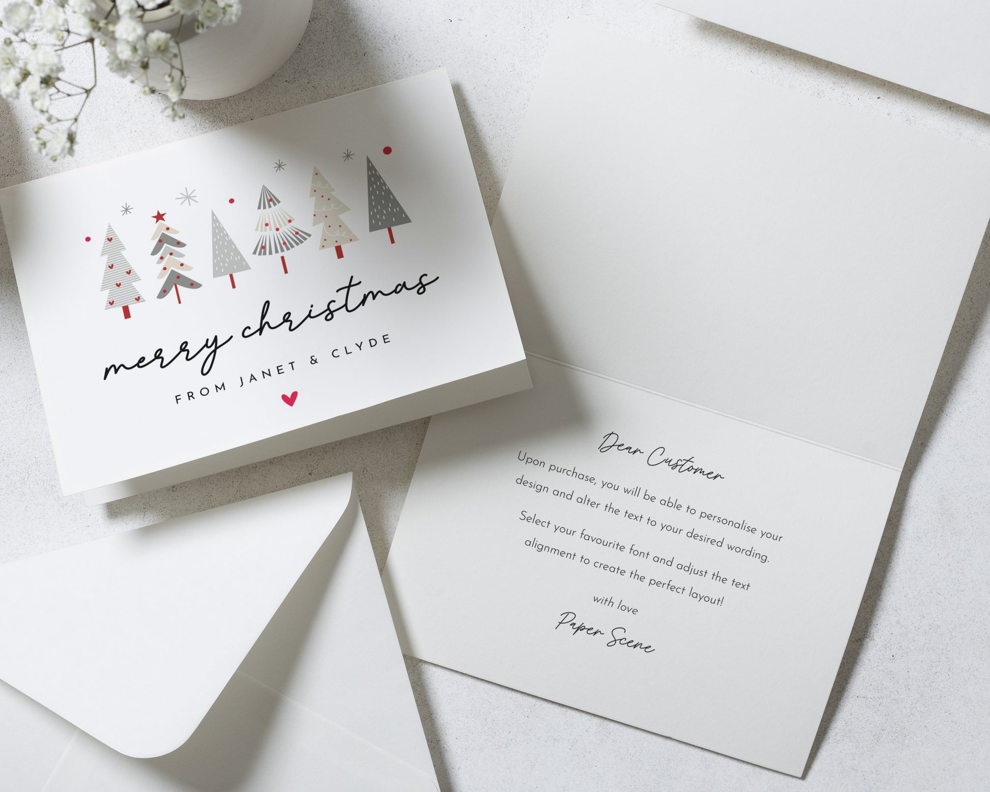 Our Christmas cards are fully personalised to you — including the wording and layout. Our simple, classic templates create a clean and elegant look that feels effortlessly personal.