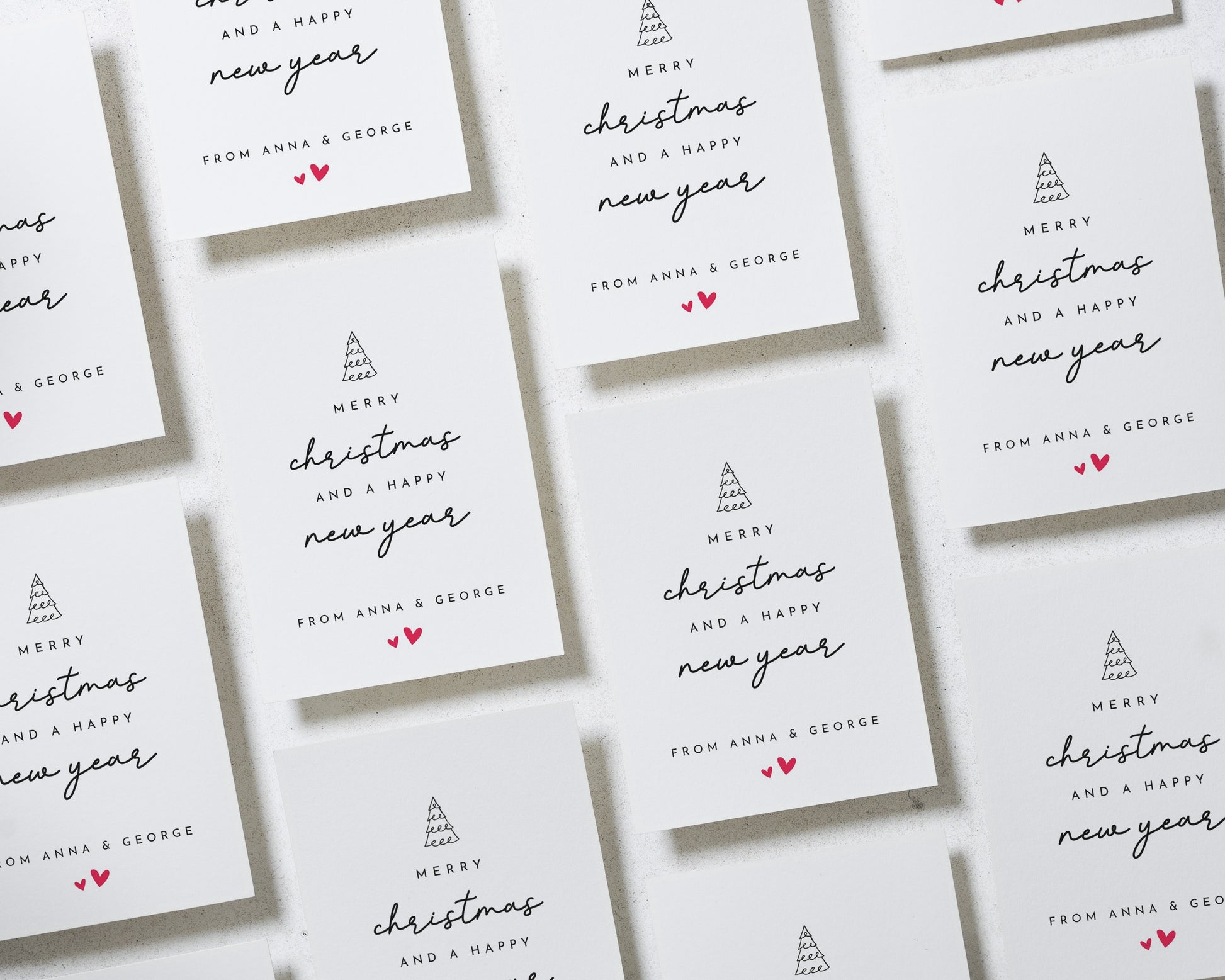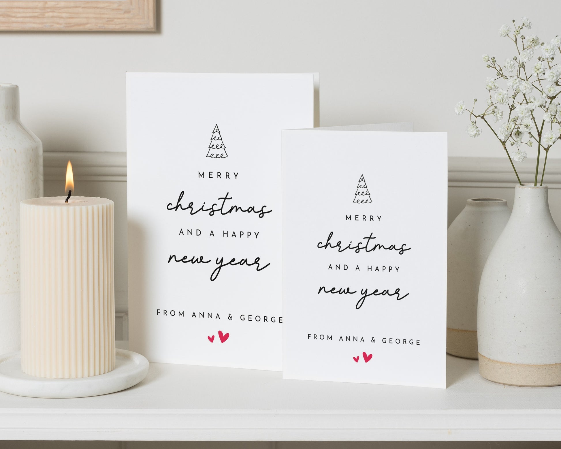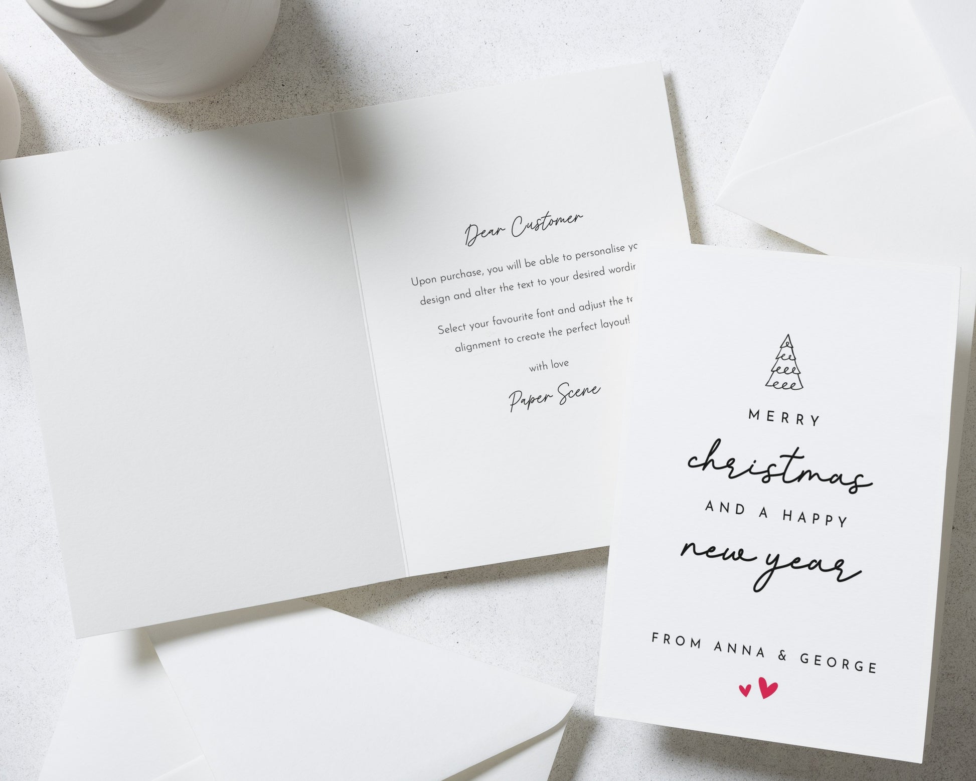 Personalised Christmas Card, Merry Christmas and Happy New Year, Minimalist Christmas Card, Custom Name, Folded Card