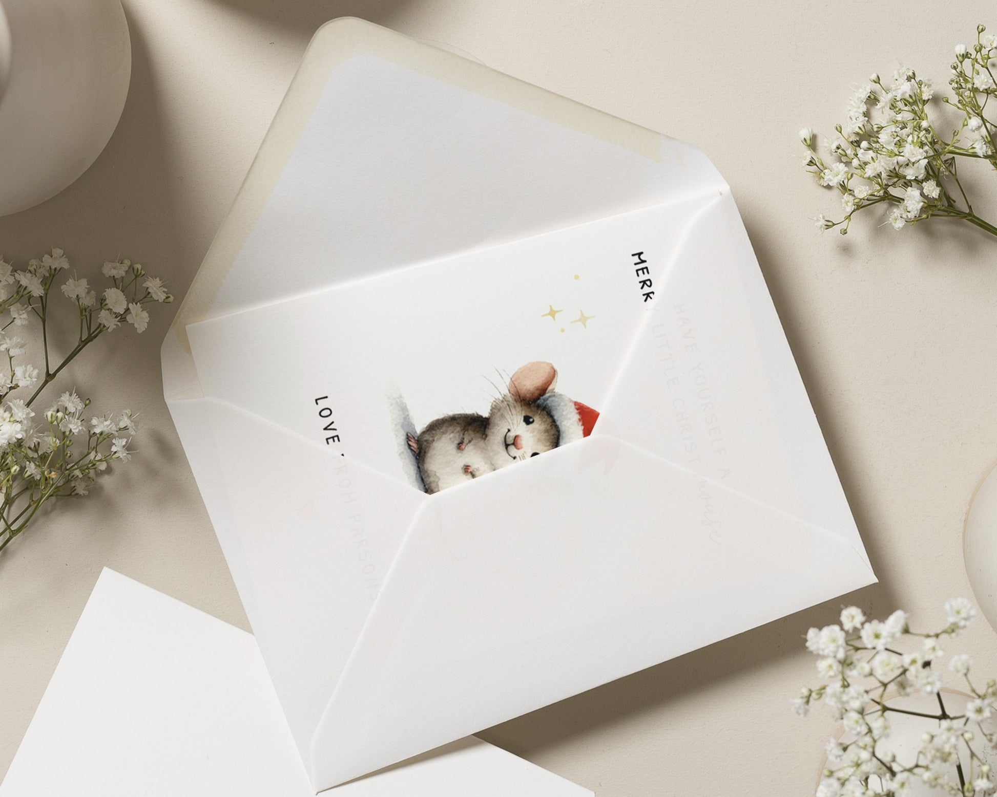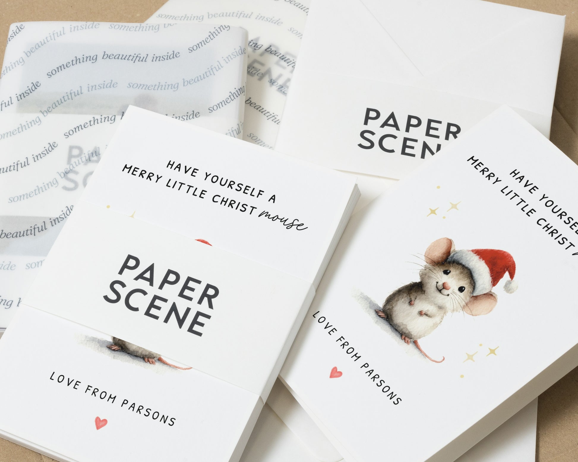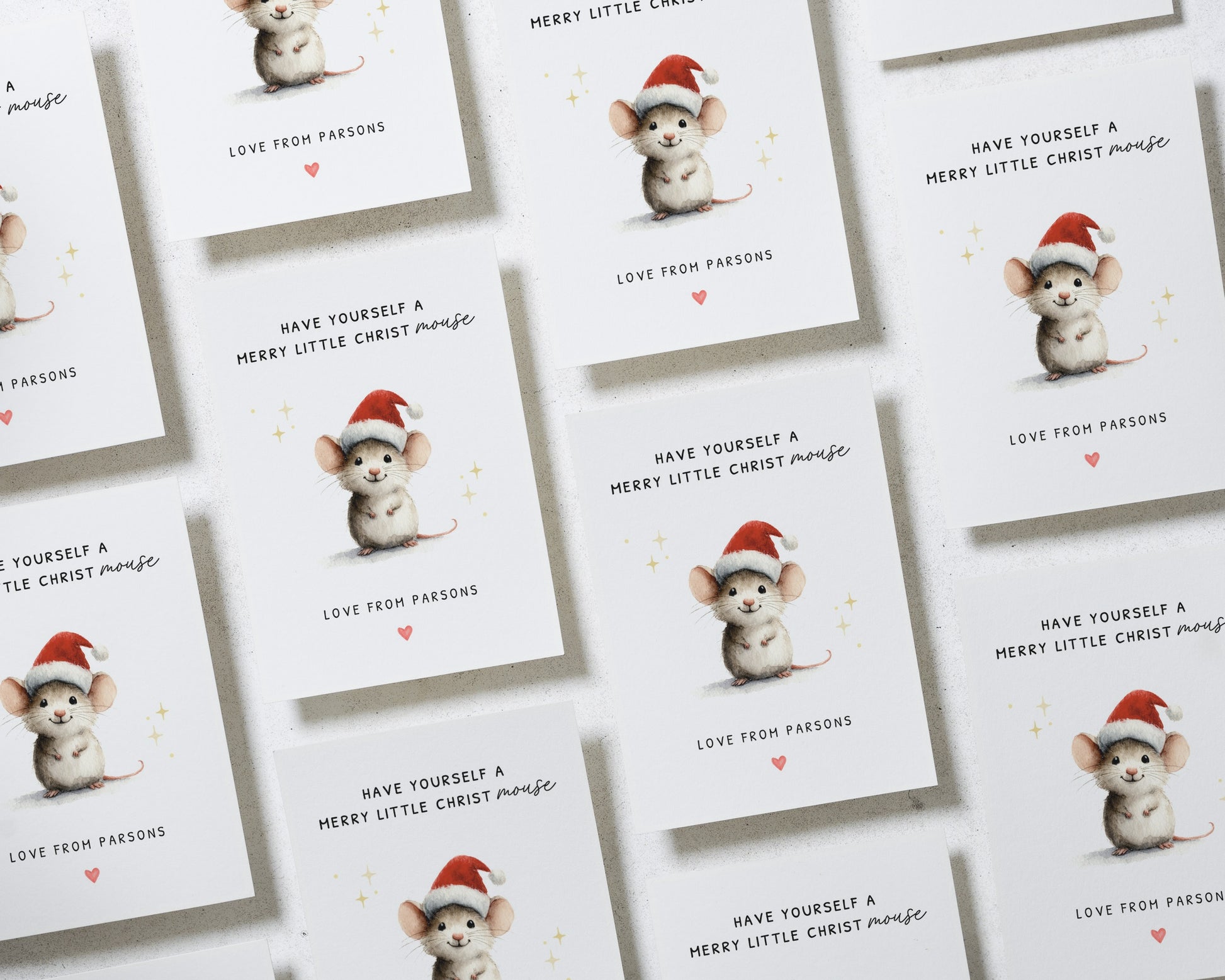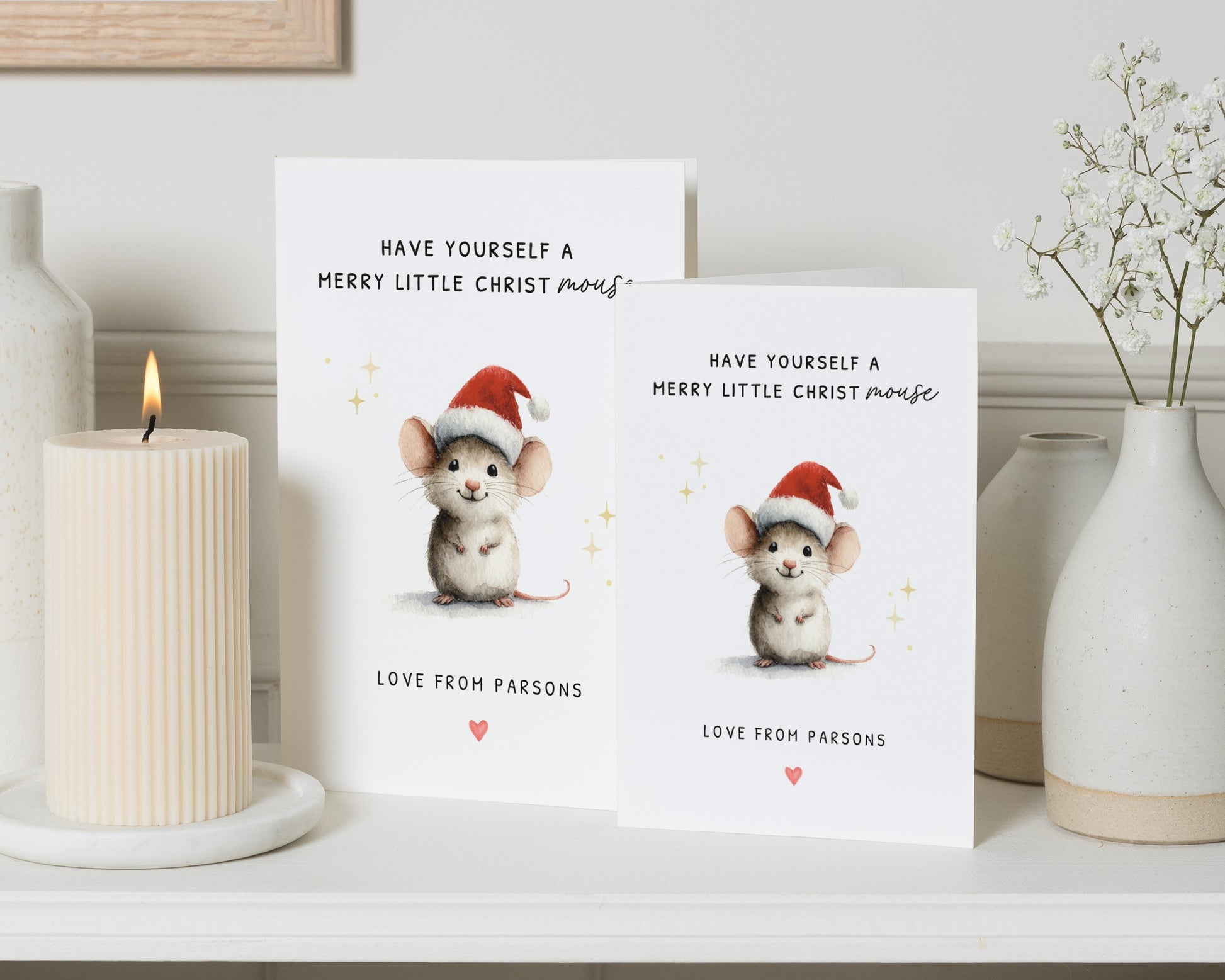 Personalised Christmas Card, Cute Mouse Christmas Card, Pack of Christmas Cards, Pack of 10, 20, 50 or 100, Custom Christmas Card