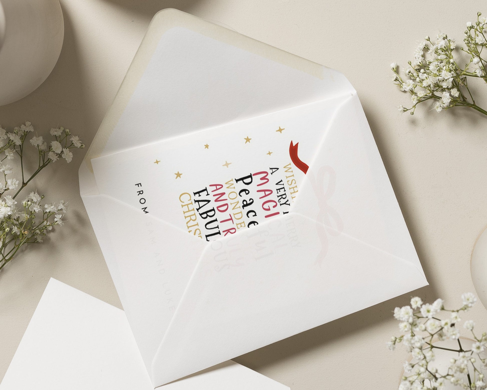 Every order includes premium heavyweight white envelopes with a diamond flap.