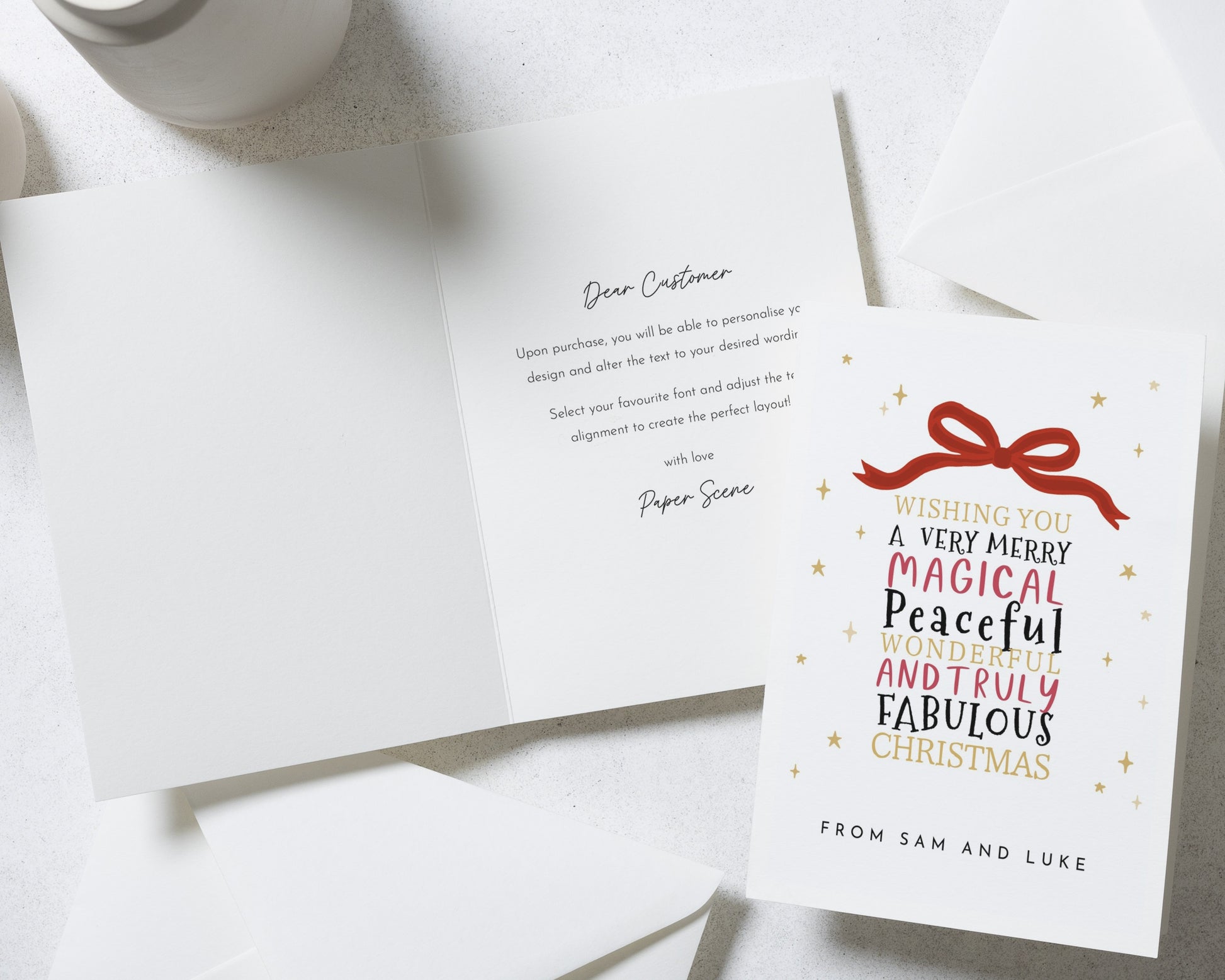 Our Christmas cards are fully personalised to you — including the wording and layout. Our simple, classic templates create a clean and elegant look that feels effortlessly personal.