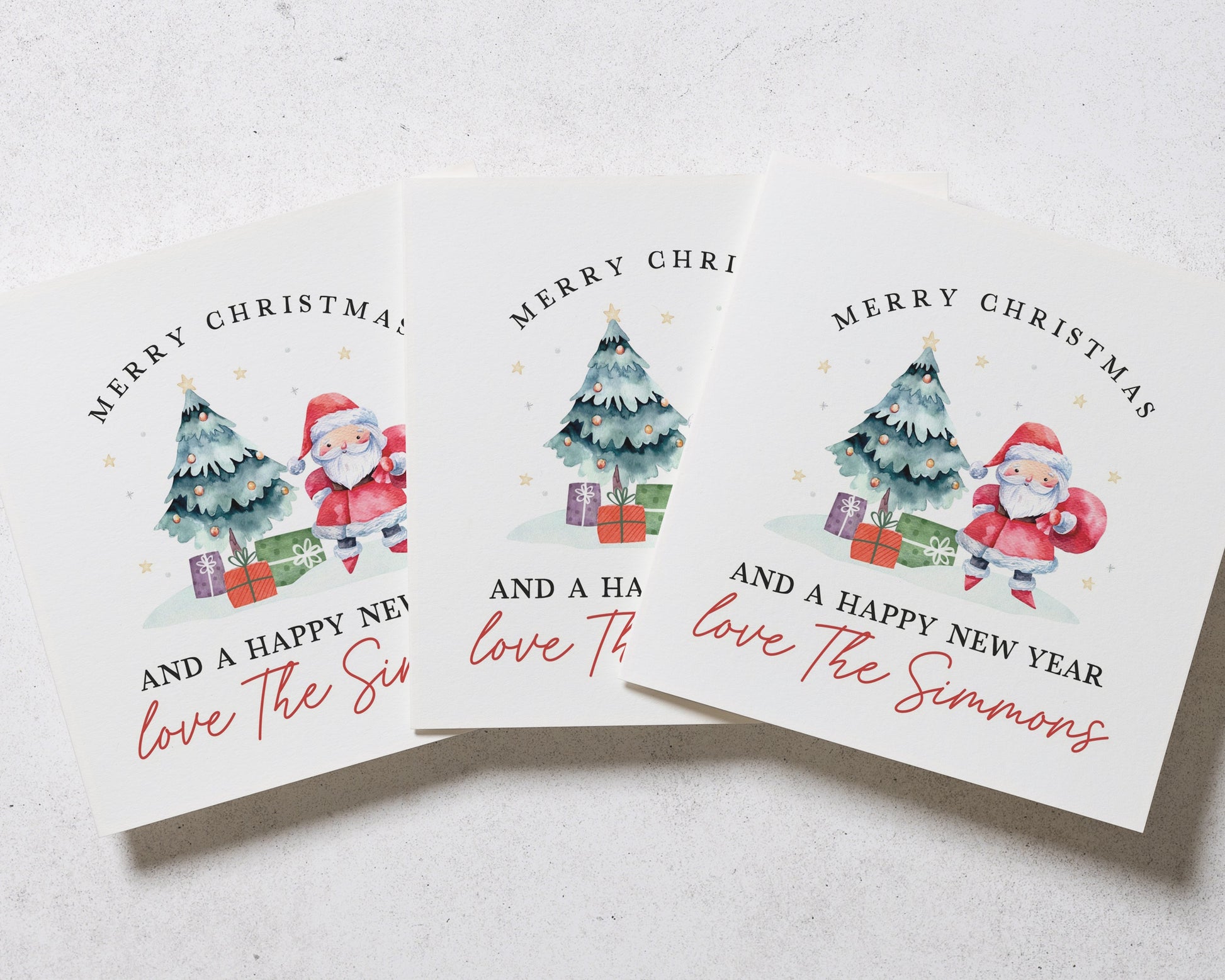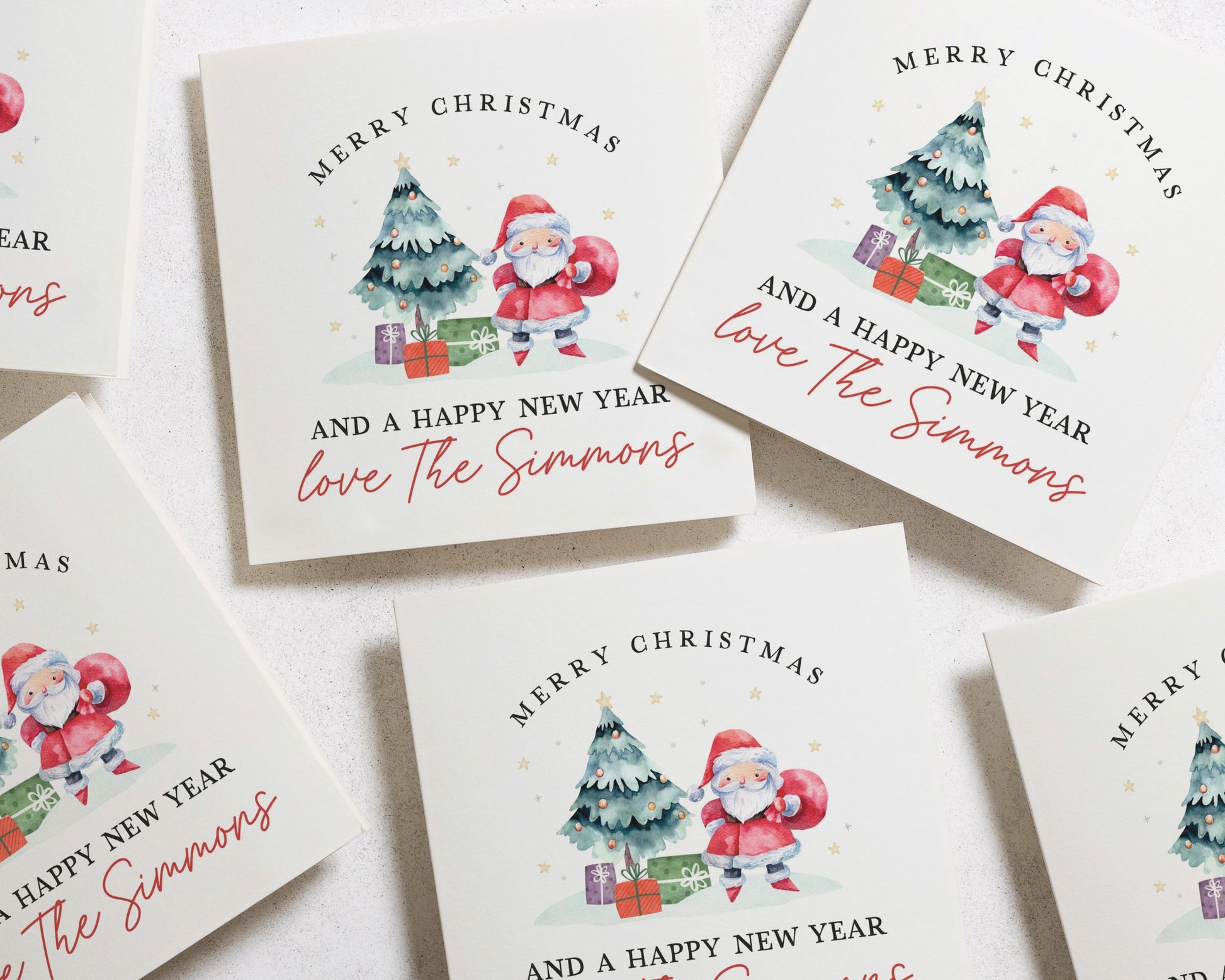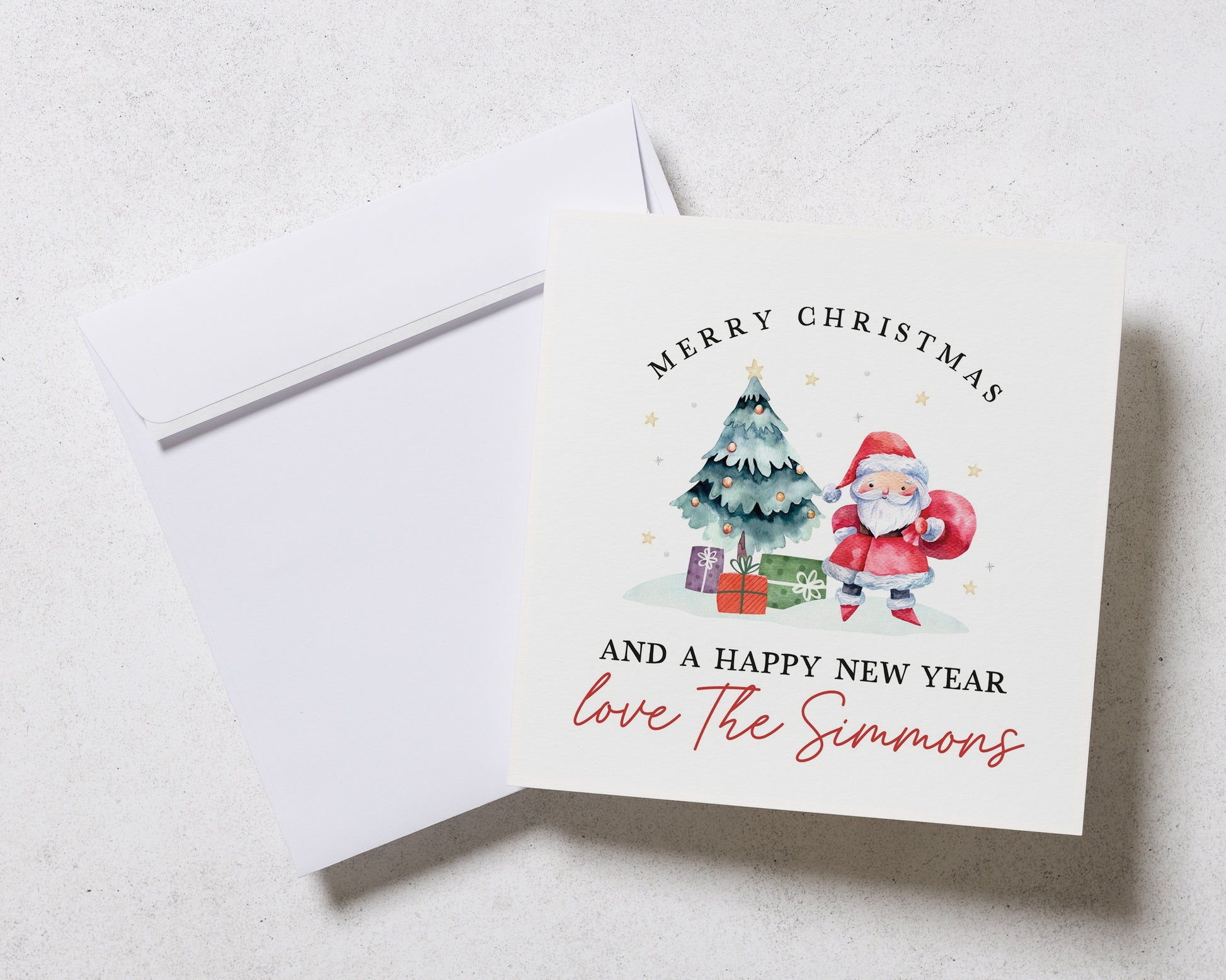 Personalised Christmas Card, Square Christmas Card, Santa Christmas Card, Custom Family Name, Merry Christmas And Happy New Year Card