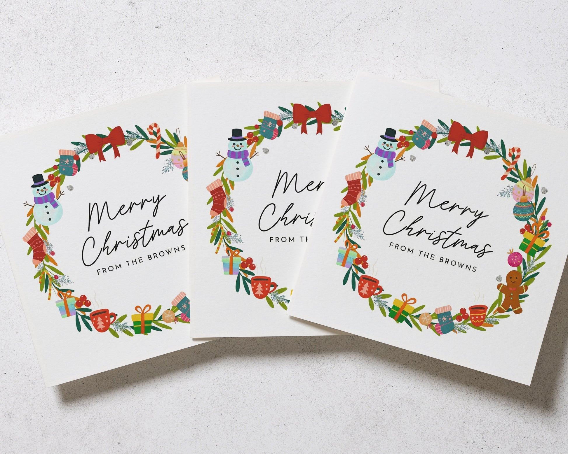 Personalised Christmas Cards, Pack of Christmas Cards, Square, Pack of 10, 20, 50 or 100, Family Christmas Card, Custom Name Card