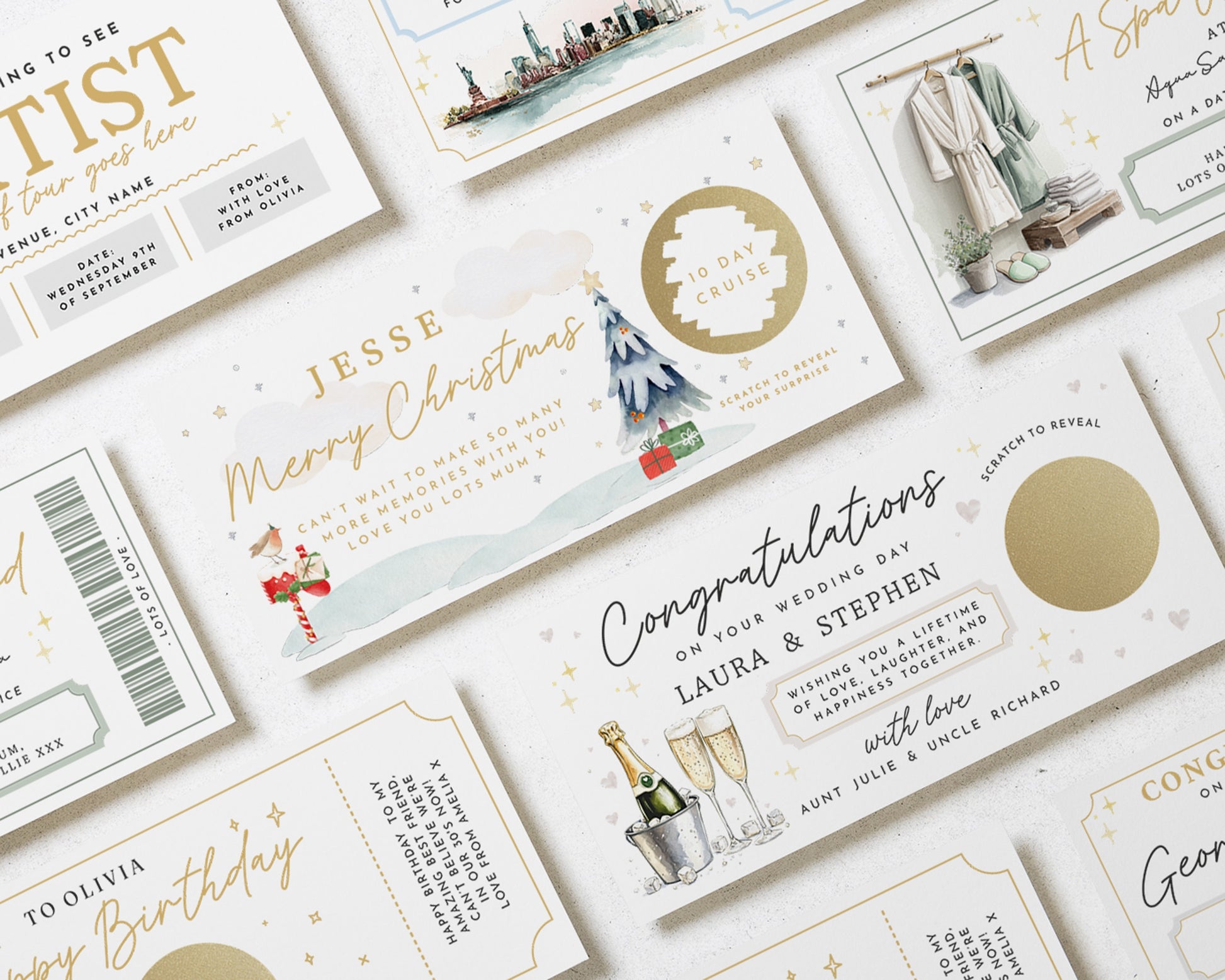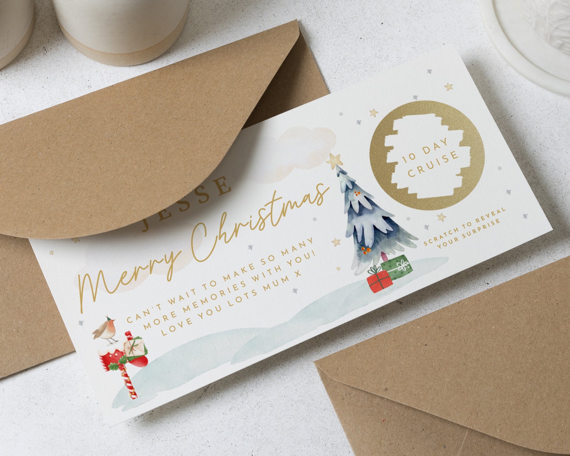 Personalised Christmas Gift Voucher, Cruise Gift Voucher, Scratch To Reveal, Gift For Him Or Her