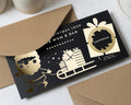 • Each voucher card measures 210x99mm, and is printed on heavyweight premium cardstock and finished with real gold foil detailing for a luxurious touch.