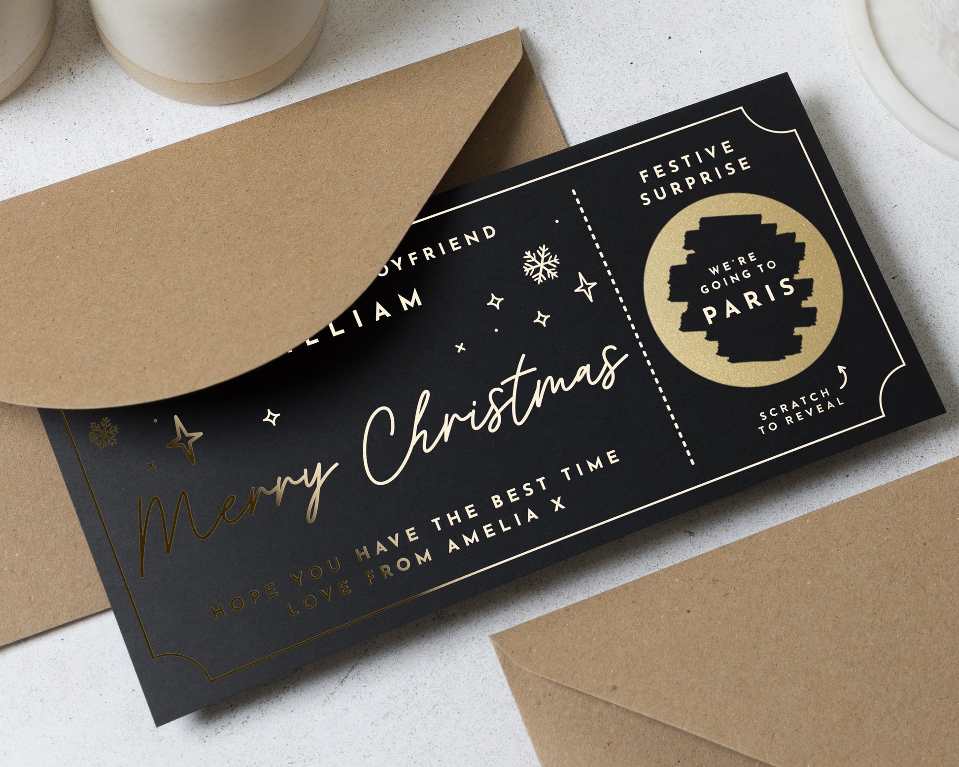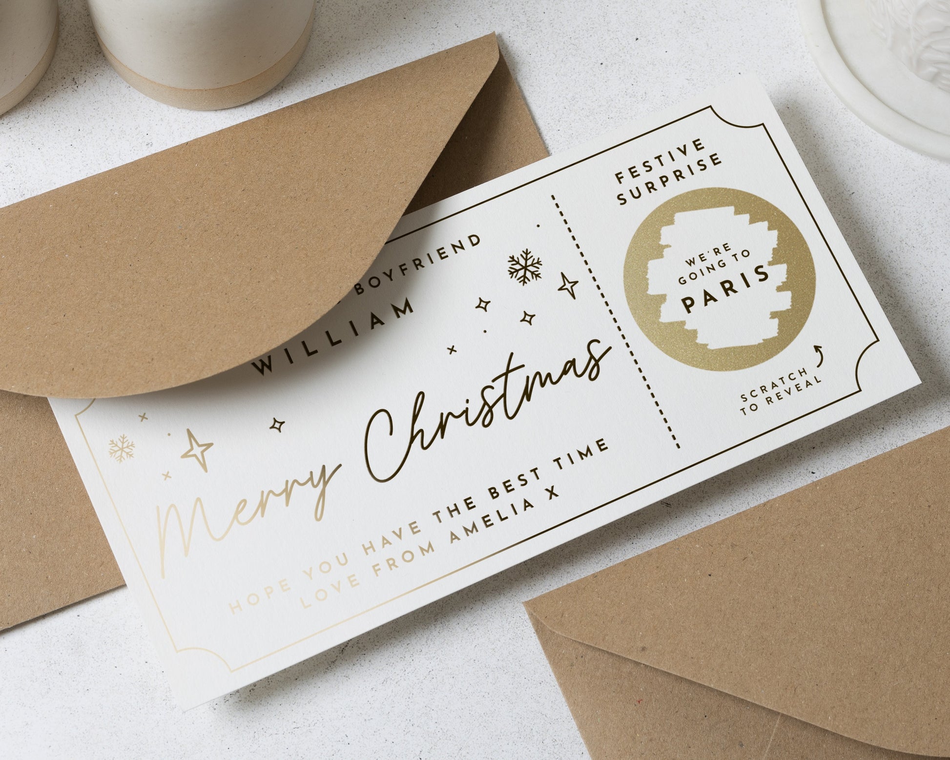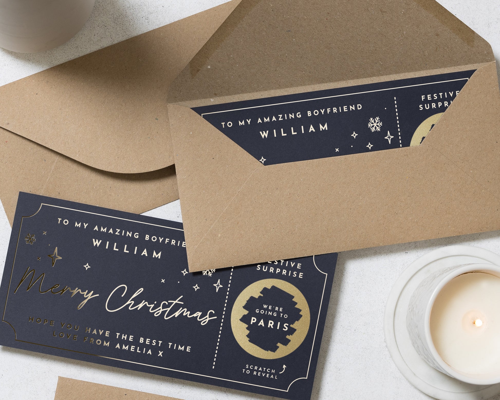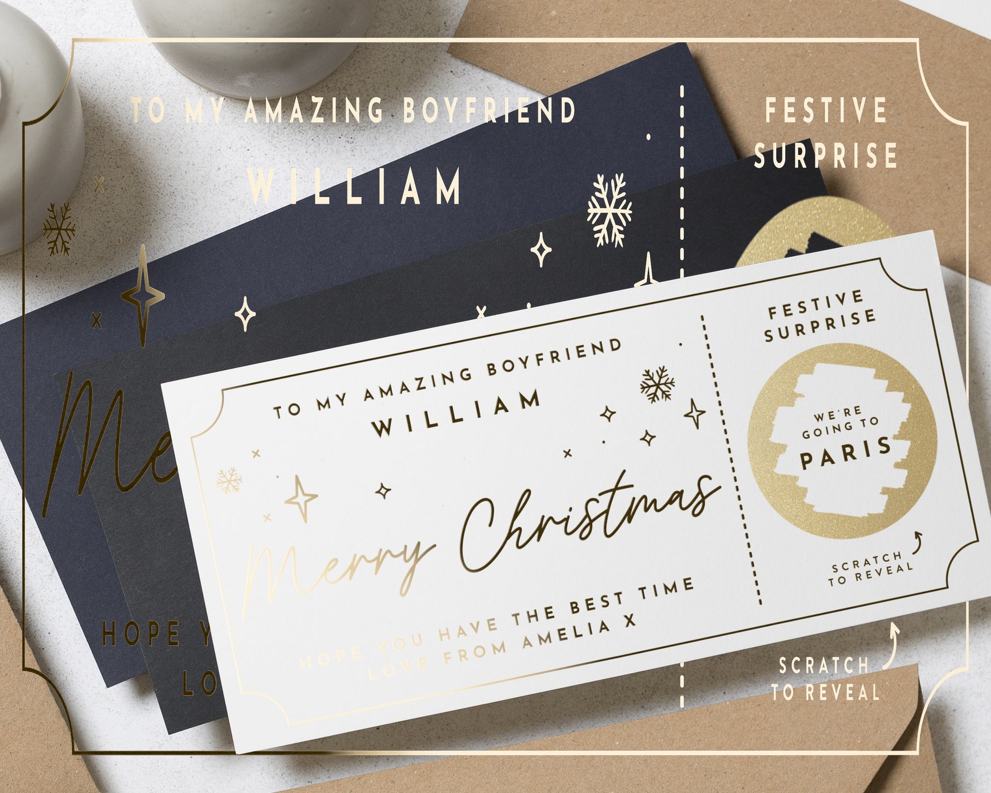 Personalised Christmas Gift Voucher for Boyfriend, Scratch to Reveal Holiday, Paris Surprise, Custom Festive Gift Card