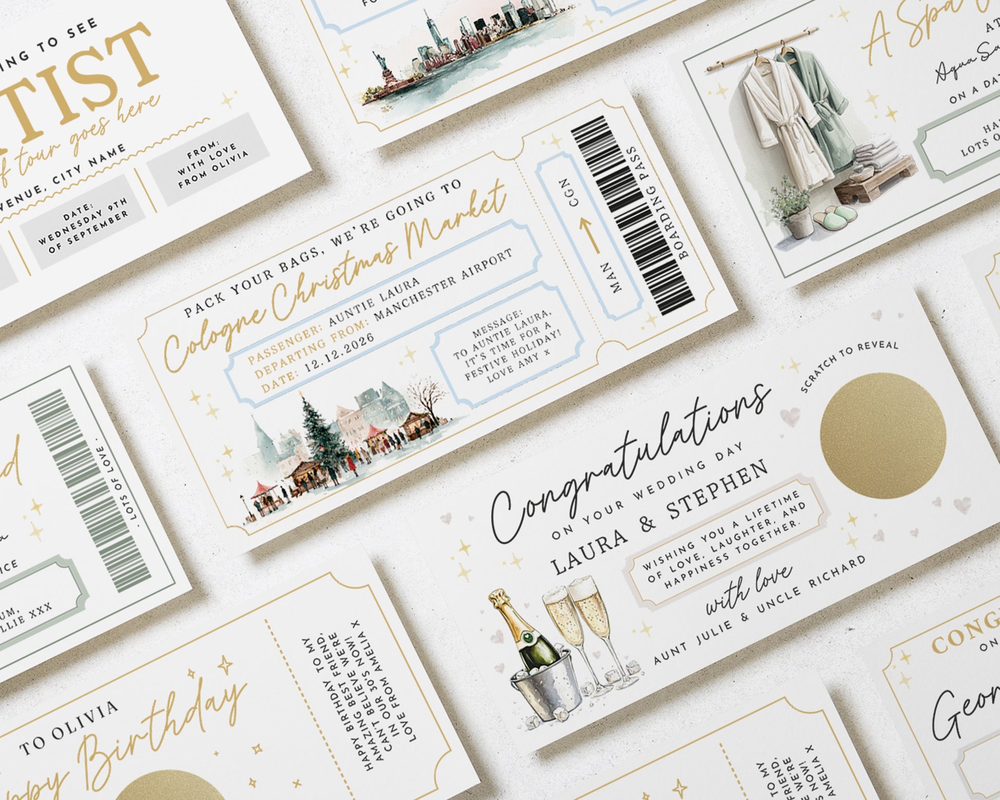 • Each voucher card measures 210x99mm, and is printed on heavyweight premium cardstock.