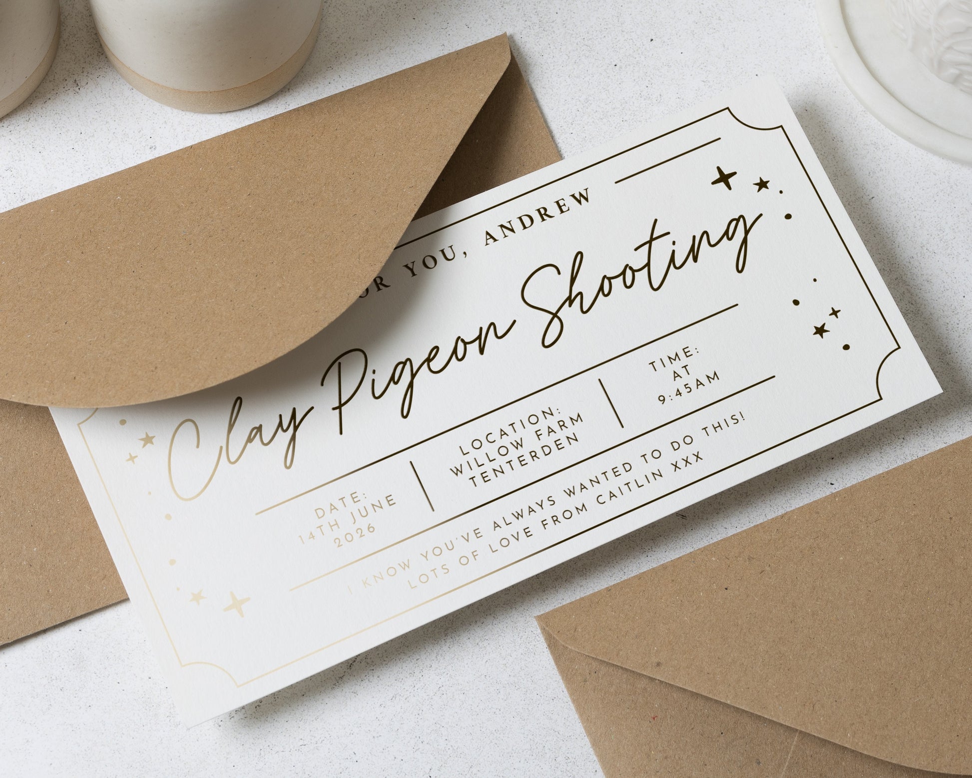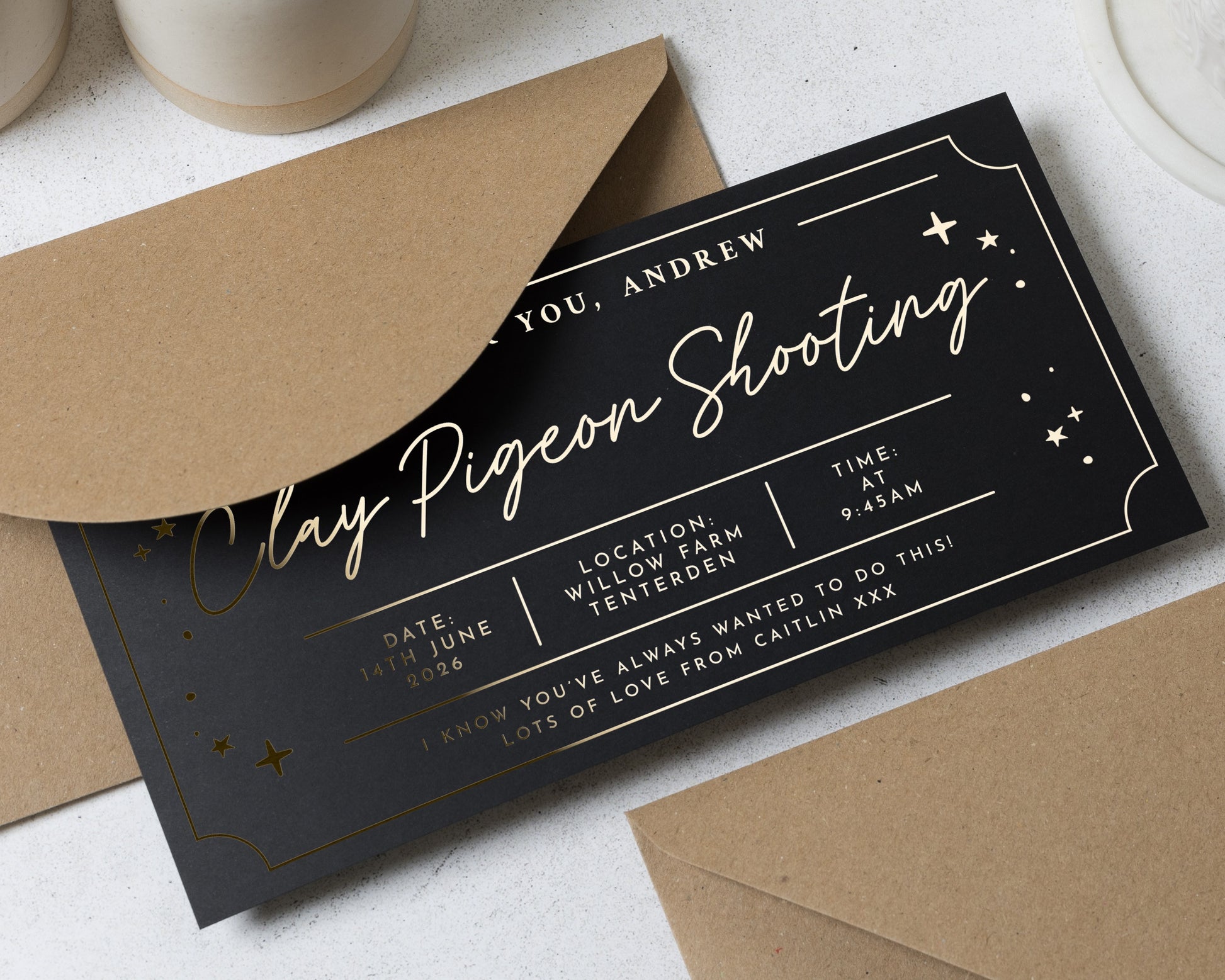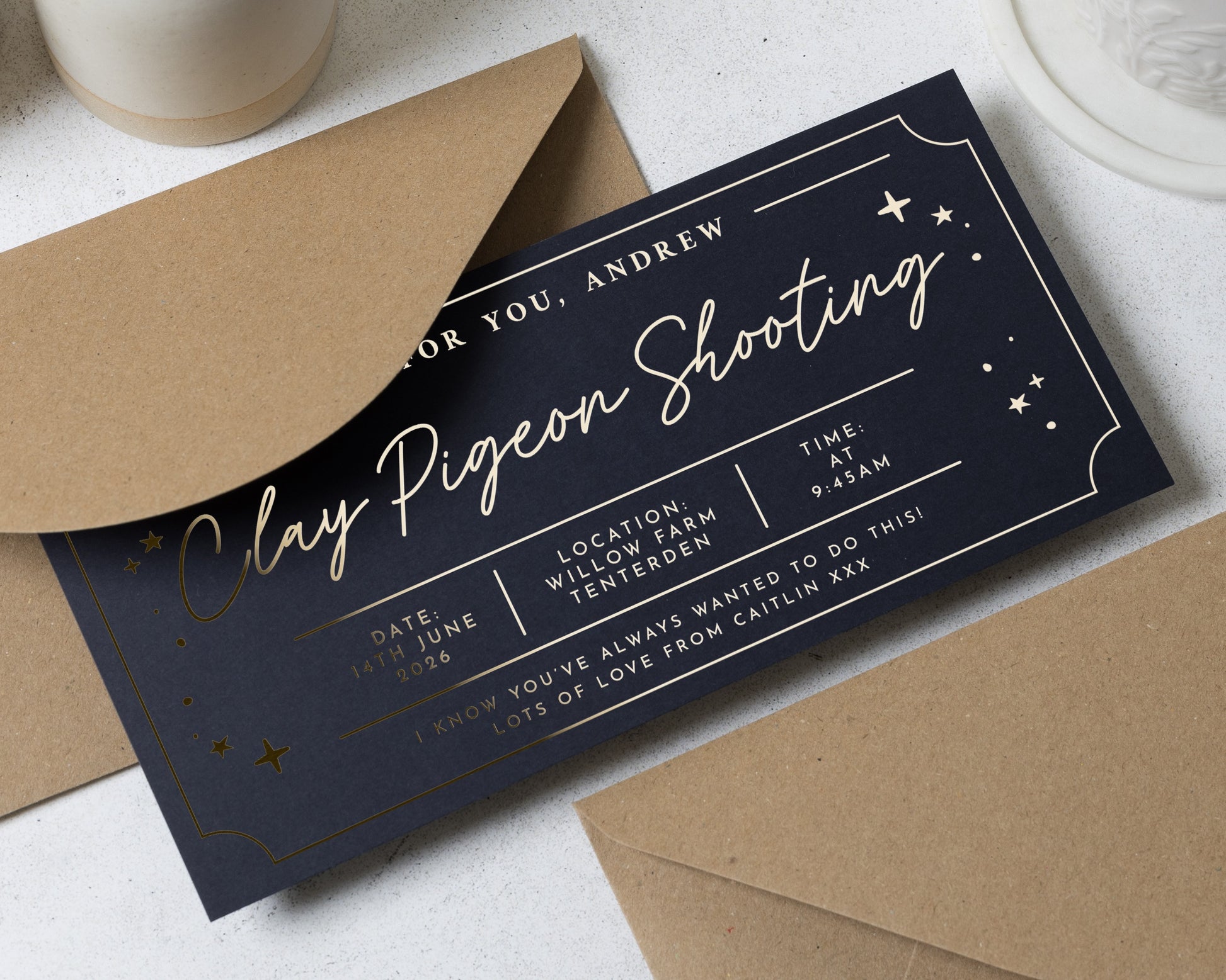 • Each voucher card measures 210x99mm, and is printed on heavyweight premium cardstock and finished with real gold foil detailing for a luxurious touch.