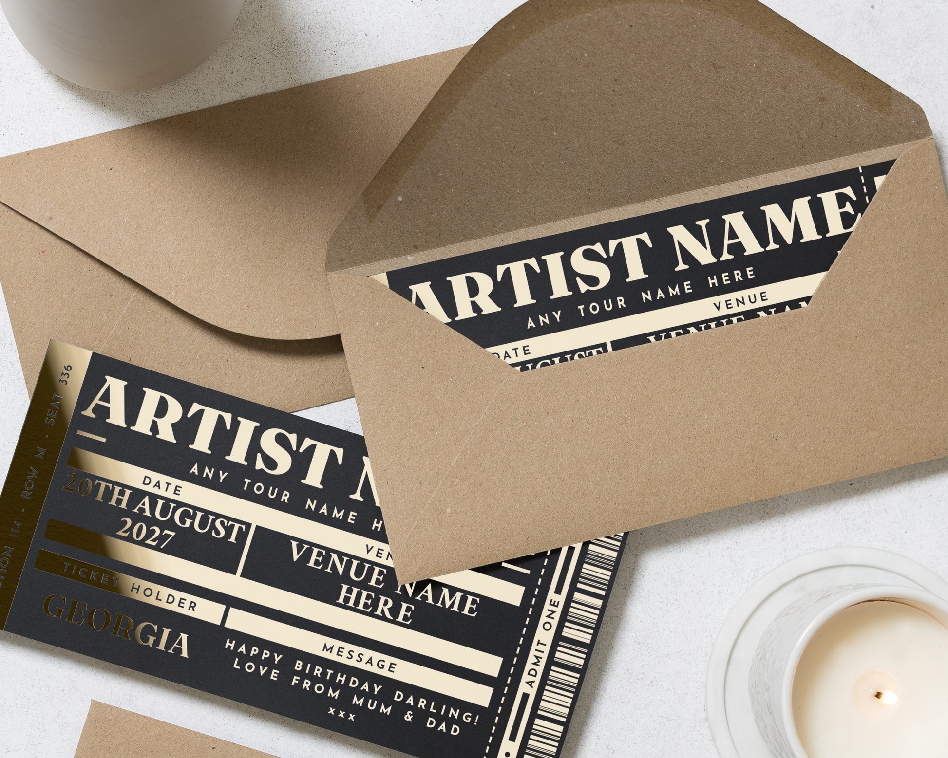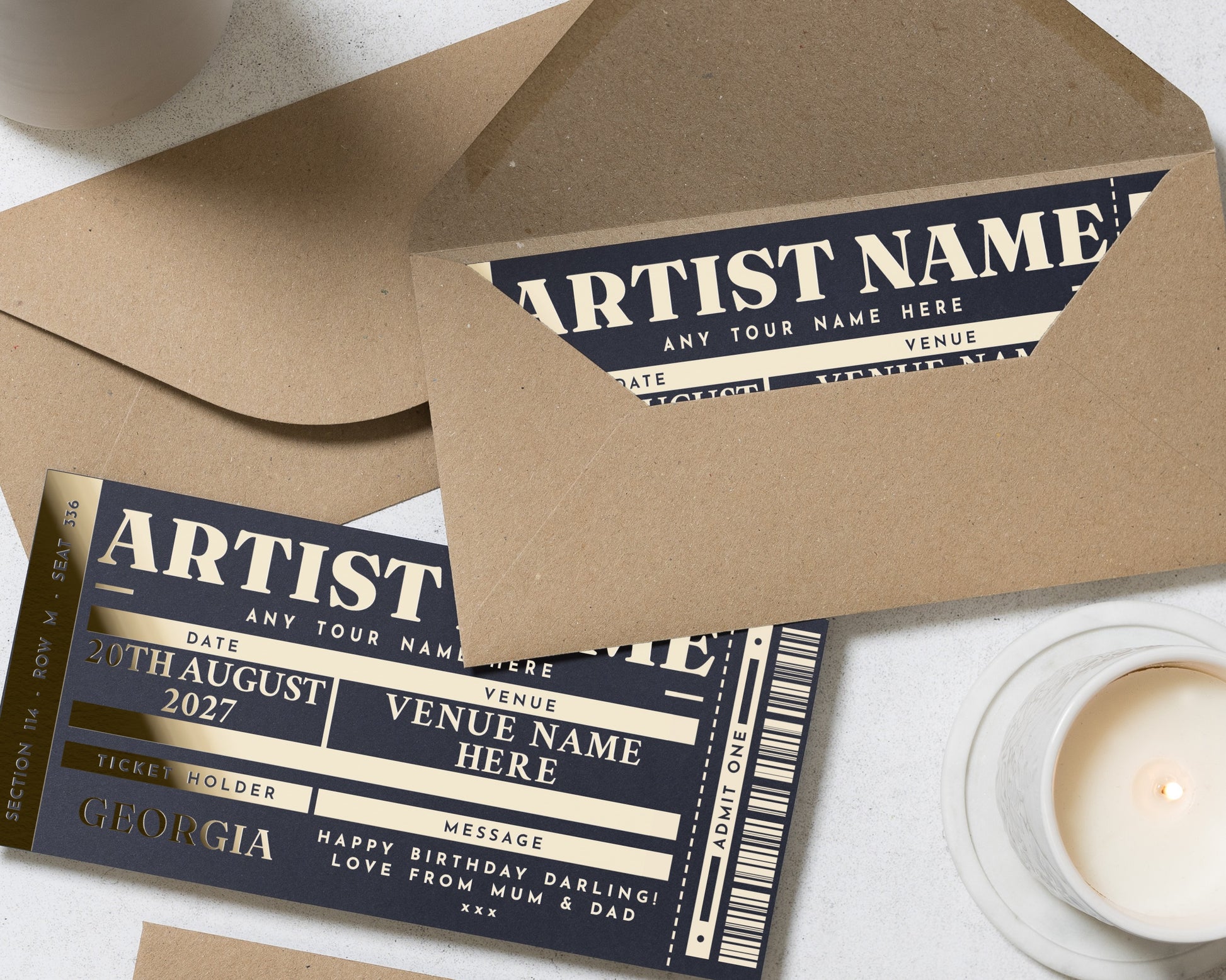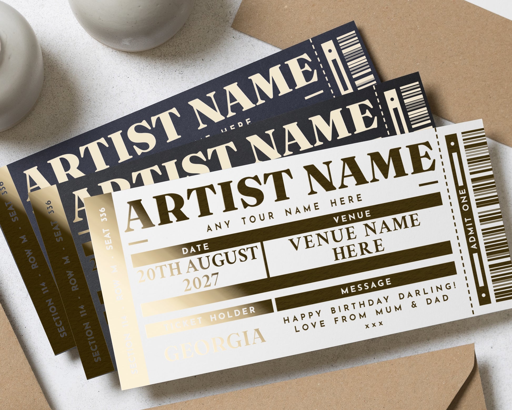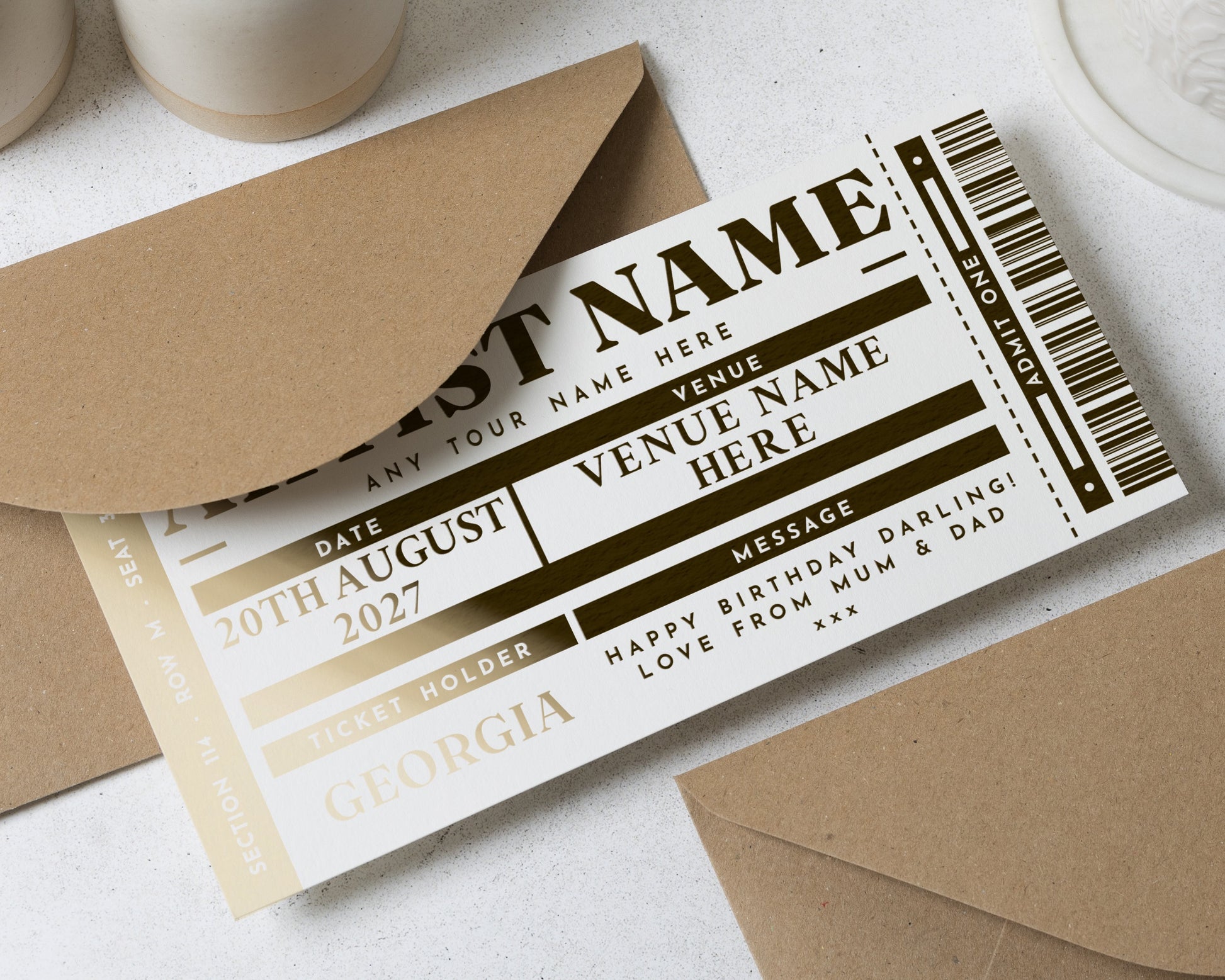 Personalised Concert Ticket Gift, Gold Foil Gift Voucher, Birthday Gift For Her, Custom Ticket, Music Experience Gift