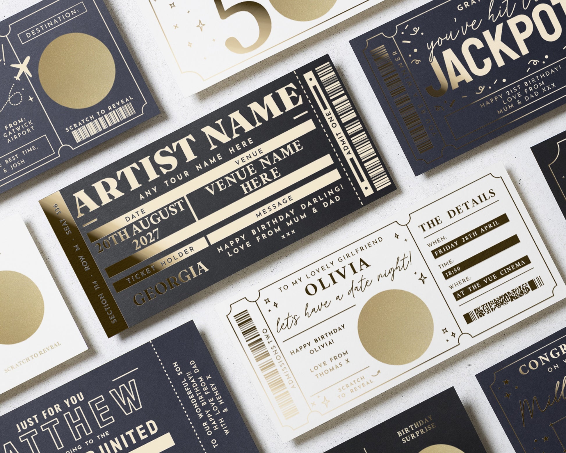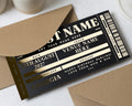 Surprise someone special with this luxurious gold foil personalised concert ticket gift voucher. Perfect for birthdays and music lovers alike, this custom ticket is a unique way to reveal an unforgettable experience.