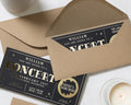 • Each voucher card measures 210x99mm, and is printed on heavyweight premium cardstock and finished with real gold foil detailing for a luxurious touch.