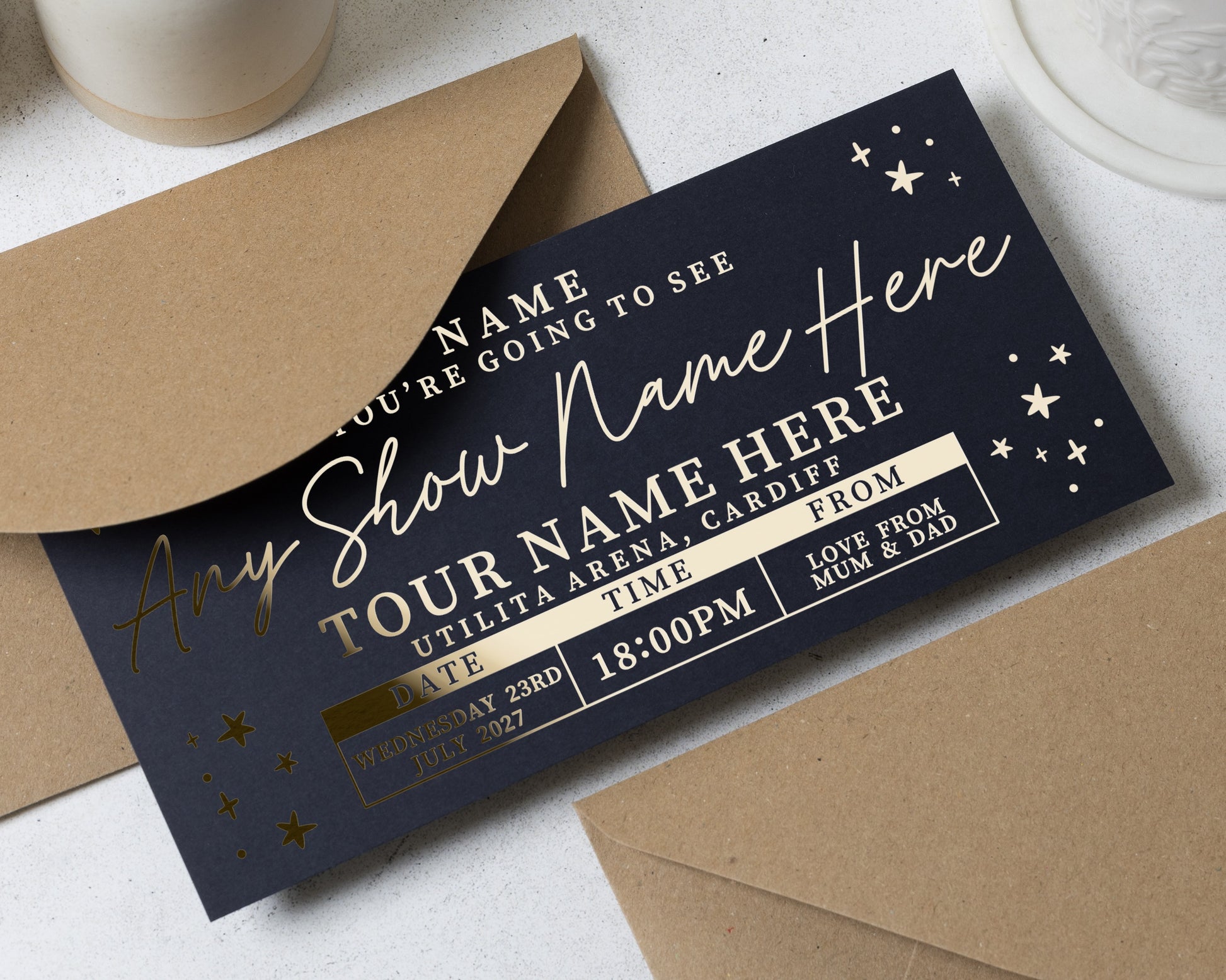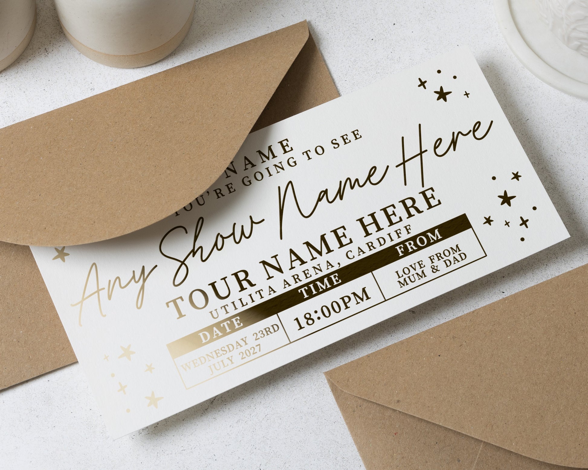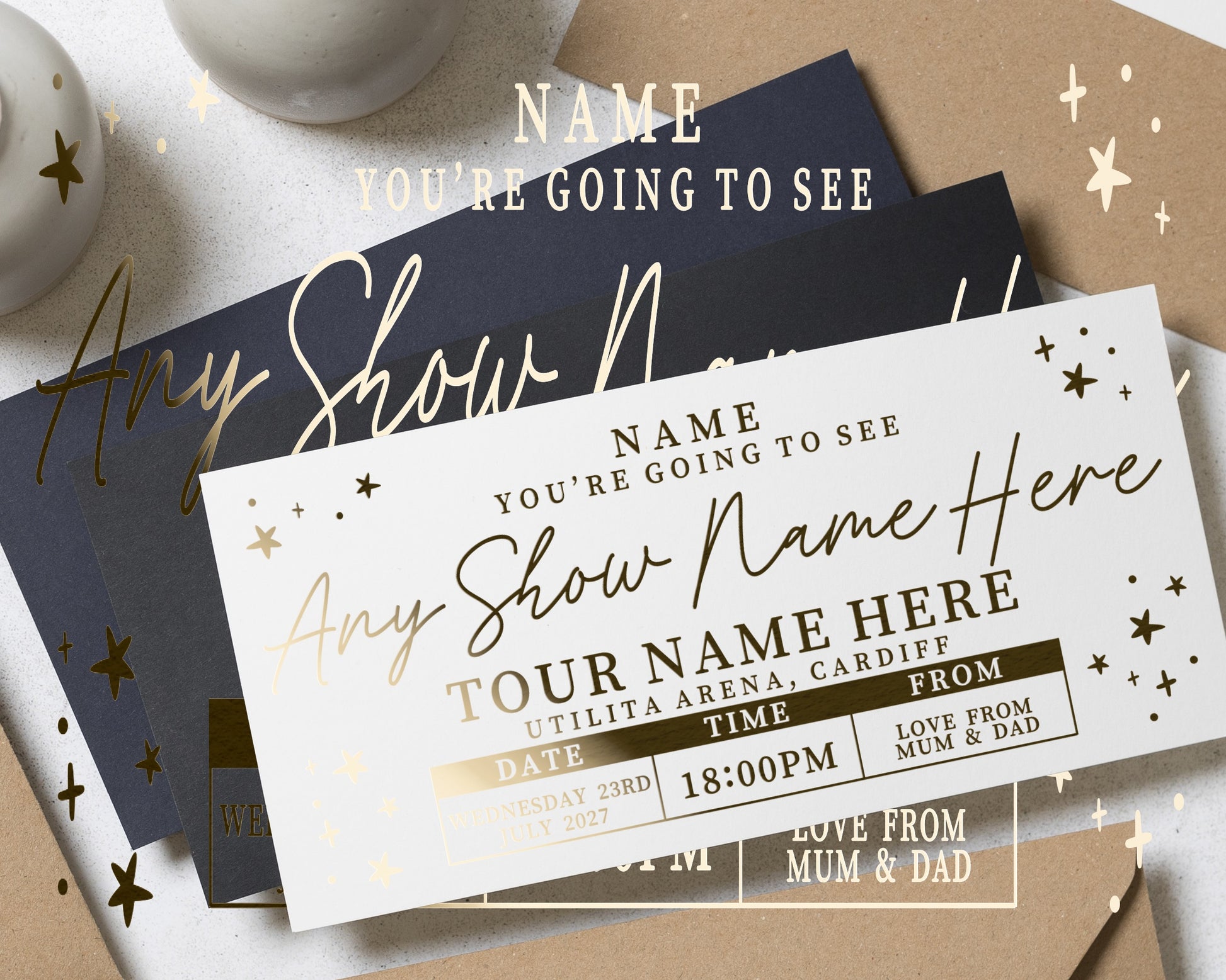 Personalised Concert Ticket Gift, Scratch To Reveal Show Voucher, Custom Gift For Her Or Him, Gold Foil Concert Gift