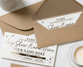 • Each voucher card measures 210x99mm, and is printed on heavyweight premium cardstock and finished with real gold foil detailing for a luxurious touch.