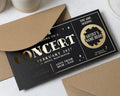 Surprise someone special with a personalised concert ticket gift voucher, featuring gold foil and a scratch to reveal panel for an extra touch of excitement.